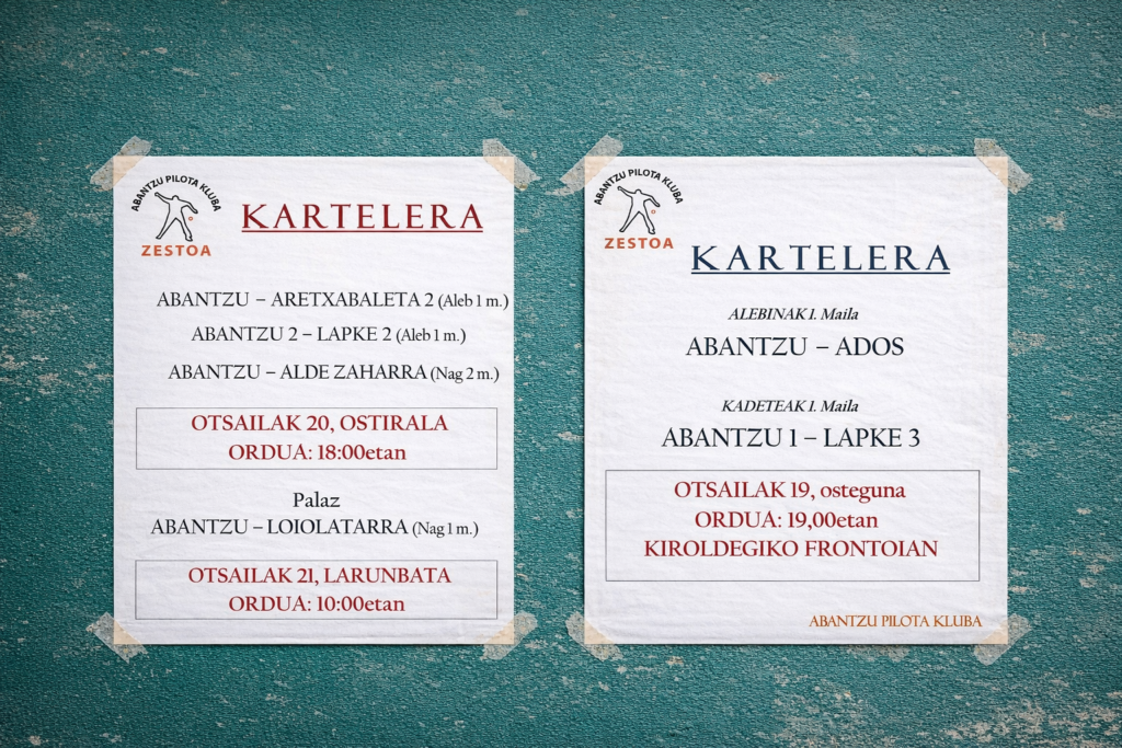 Abantzu Pilota Klubeko emaitzak eta asteburuko partidak