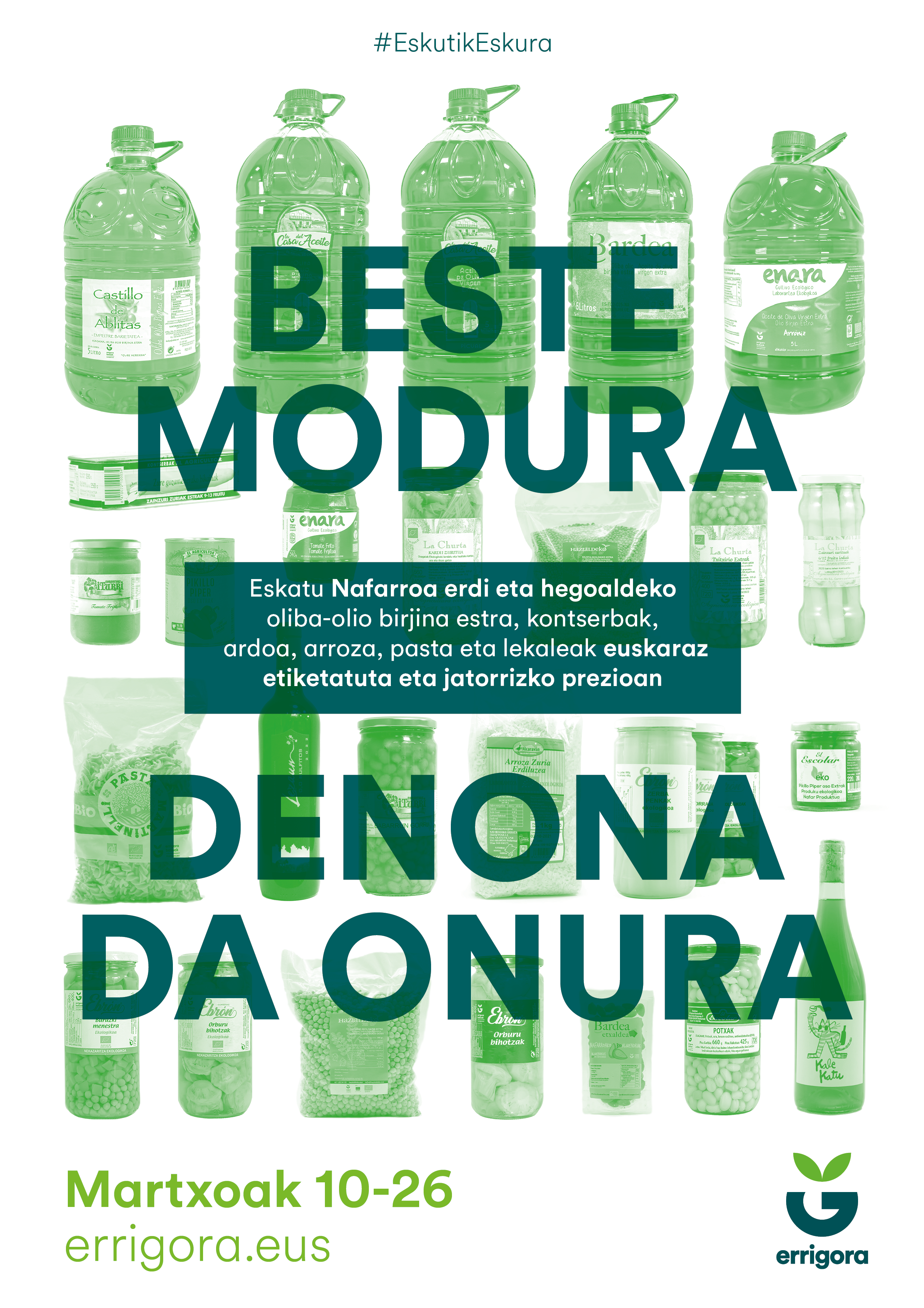 Danbolin— 2025-03-10Urtero bezala, Errigorak abian du Eskutik Eskura kanpaina, aurten “Beste modura, denona da onura” lelopean. Lelo horrekin ditugun kontsumo ohituretan jarri nahi izan dute azpimarra, izan ere, egungo elikadura sistema merkatuaren menpe dago, baina kontsumitzaileon erabakiek horri buelta ematen lagun dezakete.