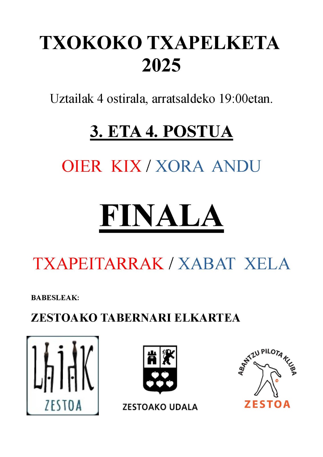 Lehenengo partida: Xabat-Xela vs. Xora-Andu Bigarren partida: Oier-Kix vs. Txapeitarrak |