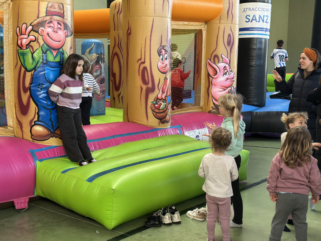 Auzoko eta inguruko haurrek arratsalde pasa ederra egin zuten pilotalekuan, salto eta salto artean. Jolasak eta meriendak lagunduta, giro alaia nagusitu zen, udaberriari ongietorria eginez.