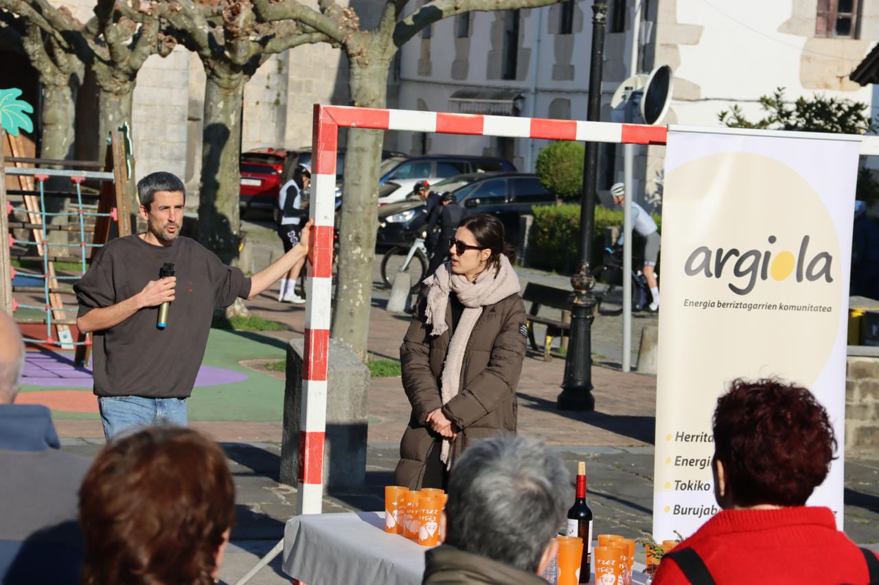 Aizarnako pilotalekuan jarritako eguzki-plaken instalazioa martxan da dagoeneko, eta sortzen duen energia herrian bertan erabiltzen hasi dira. Testuinguru horretan, atzo eguerdian, eguzkia lagun —eguna oso eguzkitsua izan baitzen—, Argiola Zestoako energia komunitateak ospakizun-ekitaldia egin zuen Aizarnan, plakak bete-betean energia sortzen ari ziren bitartean.