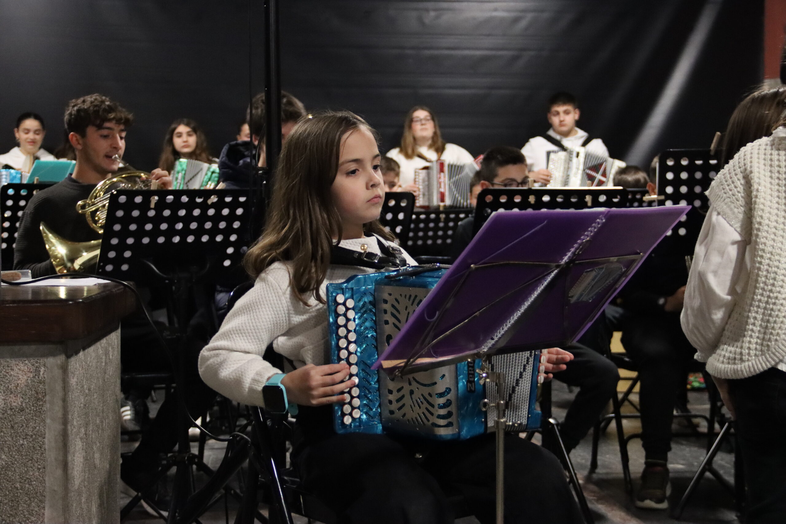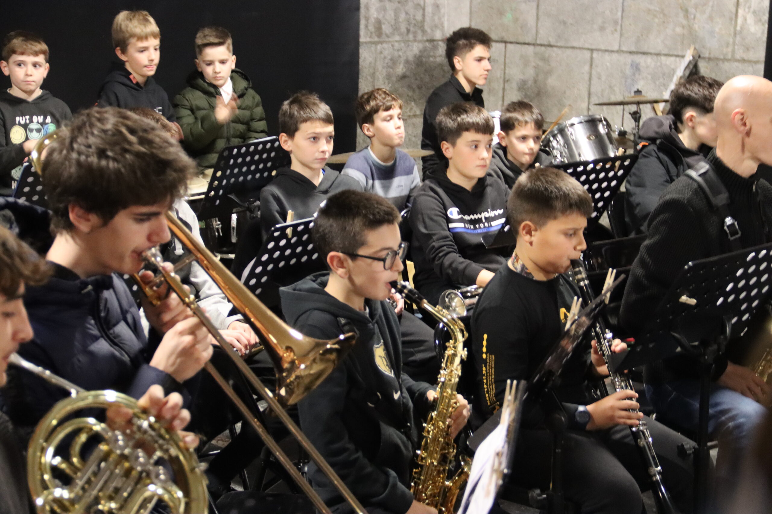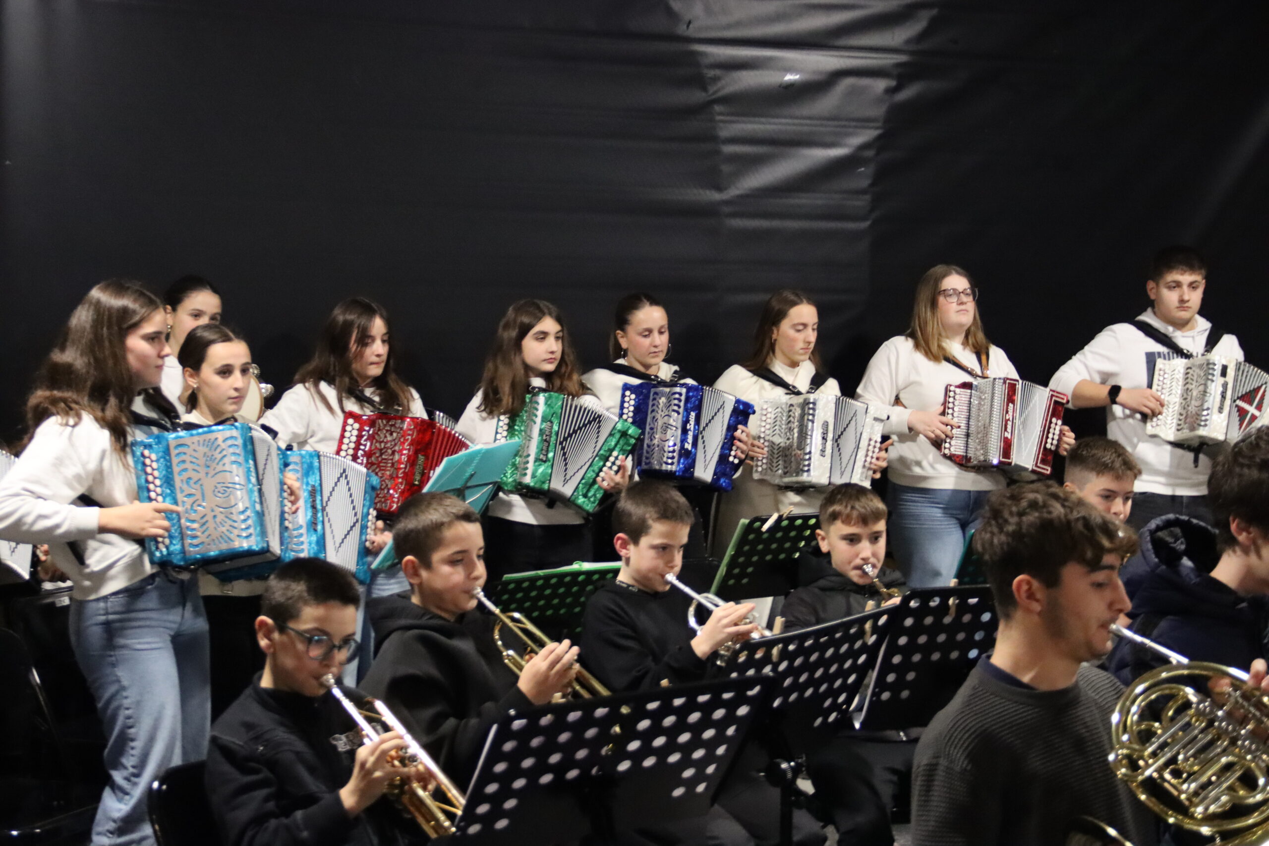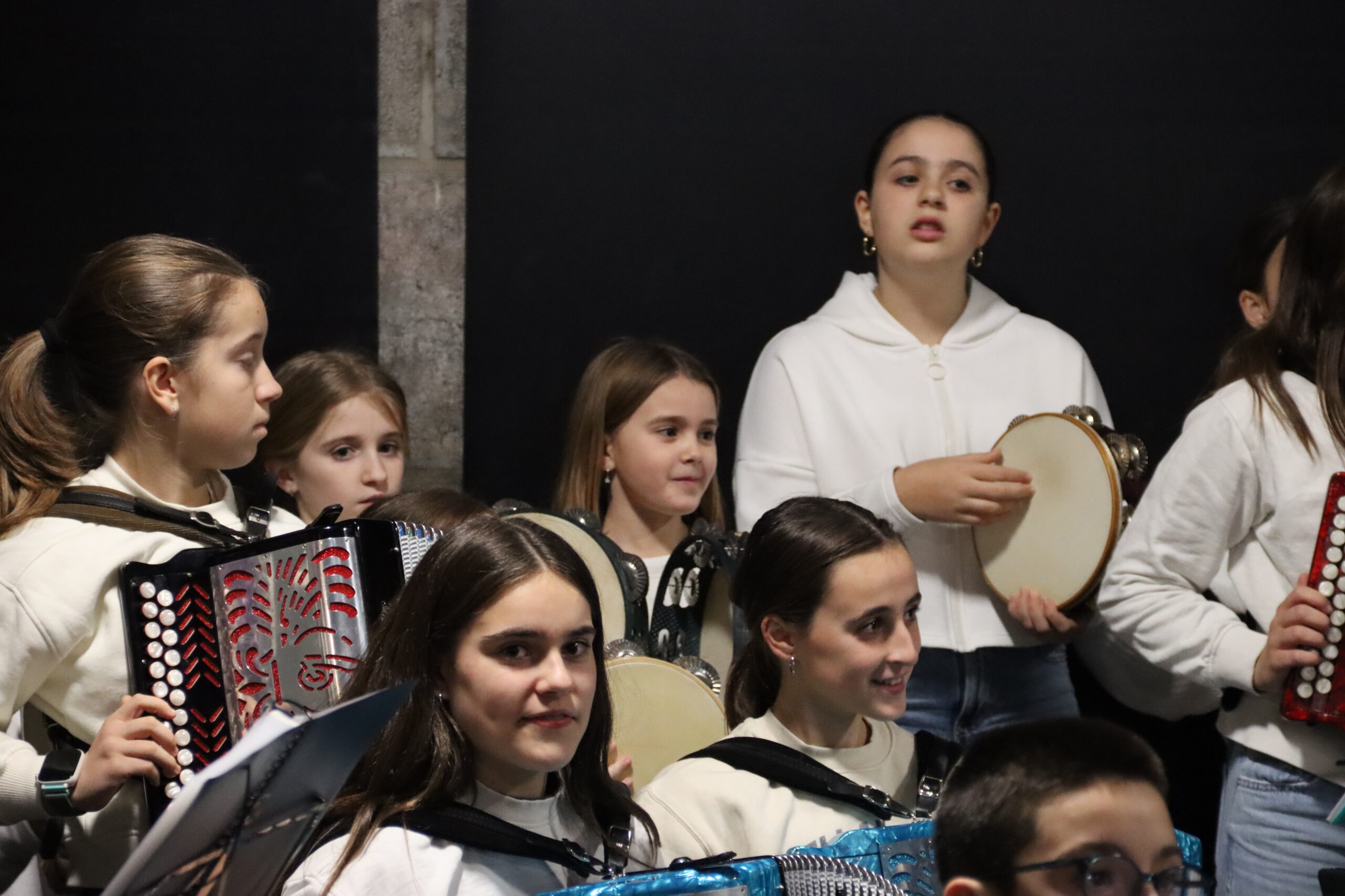 Bertaratutakoen artean giro ederra sortu zuten ikasleek; askotariko instrumentuen laguntzarekin, Gabon kantak zein bestelako piezak interpretatu zituzten.