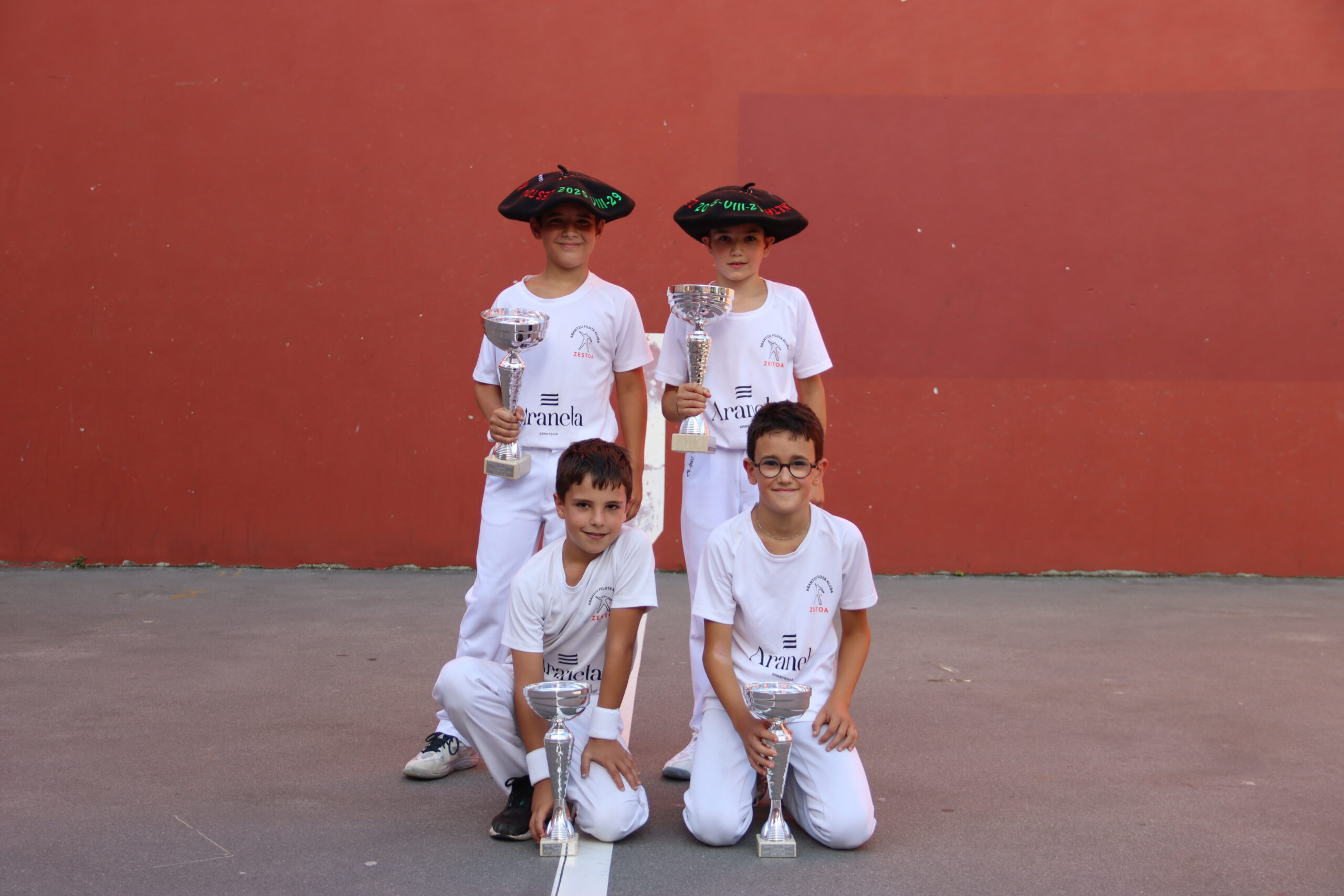 Pilota jaialdiari amaiera emateko, Abantzu Pilota Klubeko ordezkariek txapelak eta kopak banatu dizkiete finalistei.