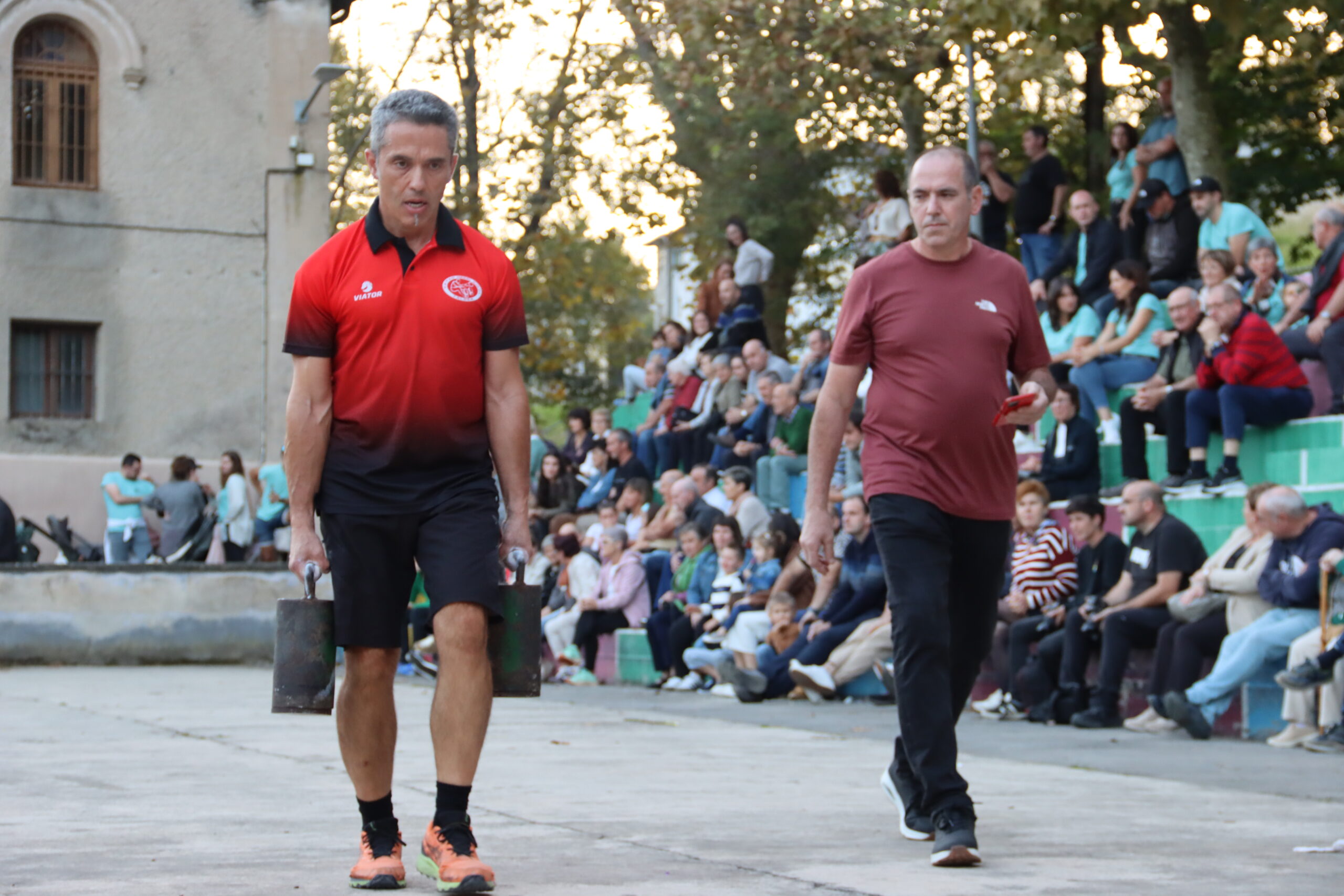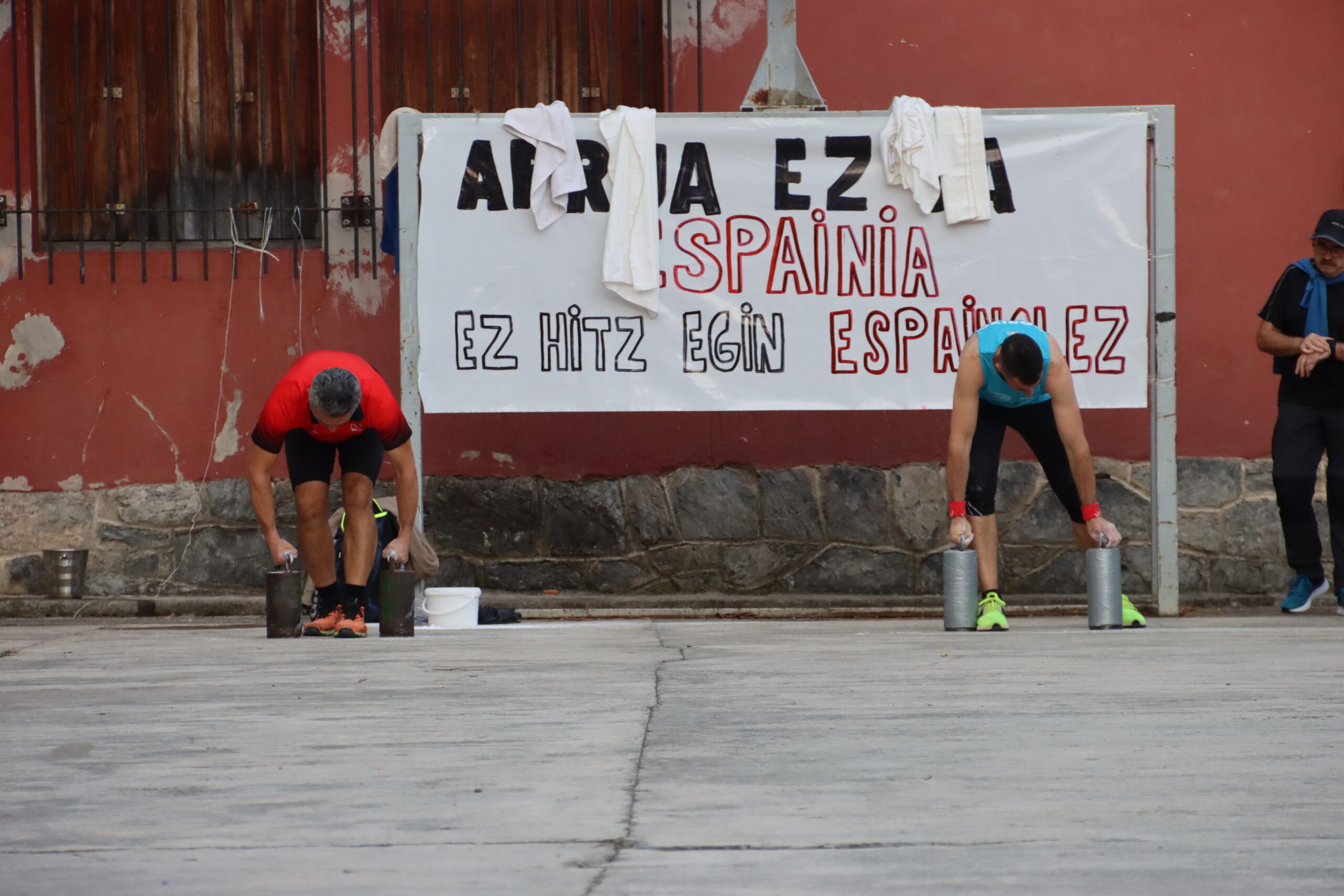 Arratsaldean, plaza jendez gainezka zegoen txinga erronka ikusteko. Giro bero eta ikusmin handian, duela 40 urte Itziarko Agustin Uranga “Billabier”-ek Arroabean ezarritako marka hausten saiatu ziren lau kirolari. “Billabier”-ek 27 kiloko txingekin 75 plaza egin zituen garaian, eta nahiz eta ez izan ziur plaza bakoitzaren luzera 20 ala 25 metrokoa zen, antolatzaileek oraingoan 25 metroko plazak egitea erabaki zuten.