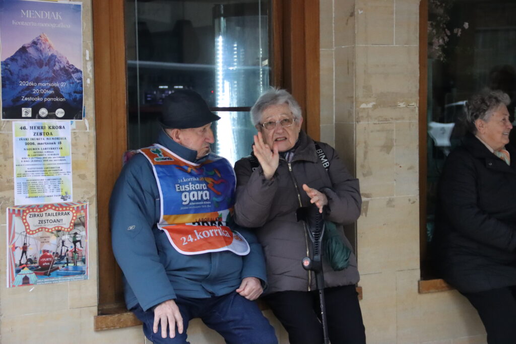 Adin guztietako herritarrak batu dira ekimenera, ume, gazte eta helduak, bakoitza bere neurrian baina helburu berarekin: euskararen alde urratsak ematen jarraitzea. Lasaon hartu dute lekukoa zestoarrek, eta Gurutzean jendetza handia bildu da Korrikari ongietorria egiteko. Herriguneko zatian korrika egin ondoren, oinez atera dira herritik, egoitzetako ordezkariek lekukoa hartu dutenean, guztientzako erritmoa zainduz, eta handik aurrera Azpeitirako bidea hartu du berriz martxak.