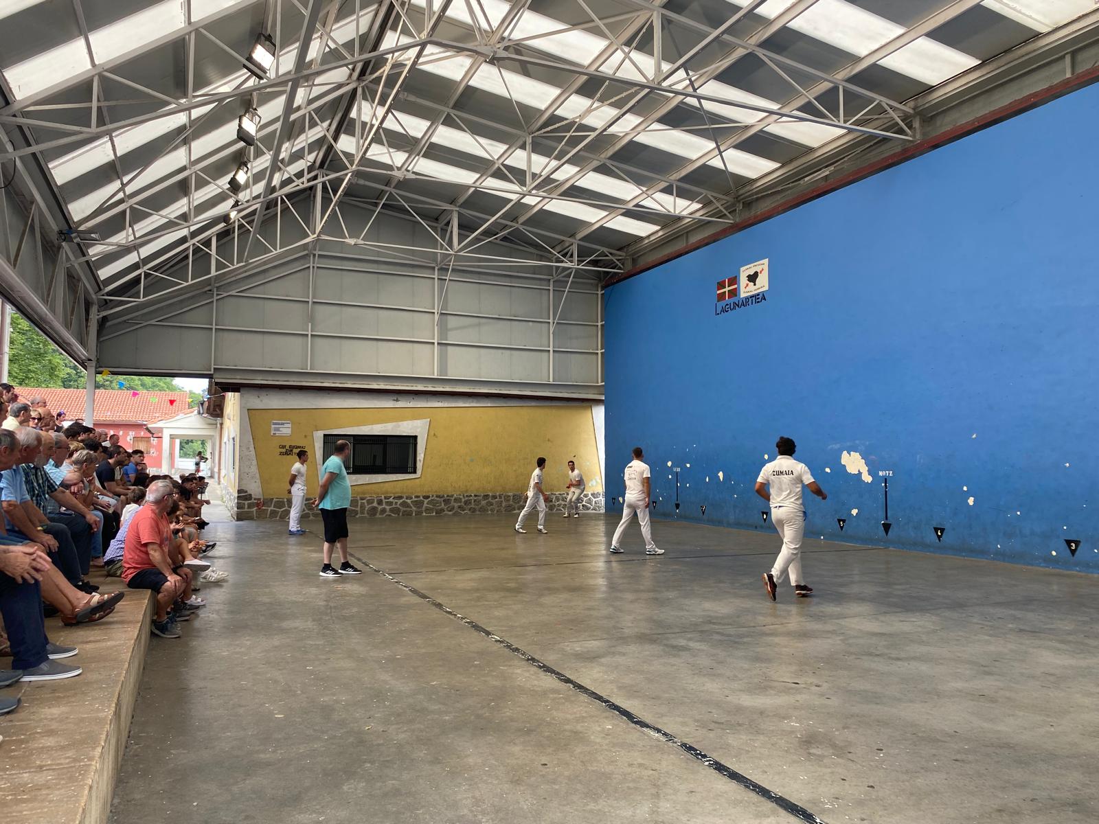 Arratsaldean, buruhandien kalejiraren ostean, Zestoako Sarek antolatutako II. Etxera Esku Pilota Txapelketako finalak jokatu ziren. Lehenik eta behin, hirugarren eta laugarren postuak erabakitzeko partida jokatu zen. Frontoia jendez lepo zegoela jokatu zen jarraian final handia, eta Olaizola–Etxabe bikoteak lortu zuen txapela, 22–18ko emaitzarekin garaile aterata.