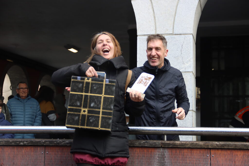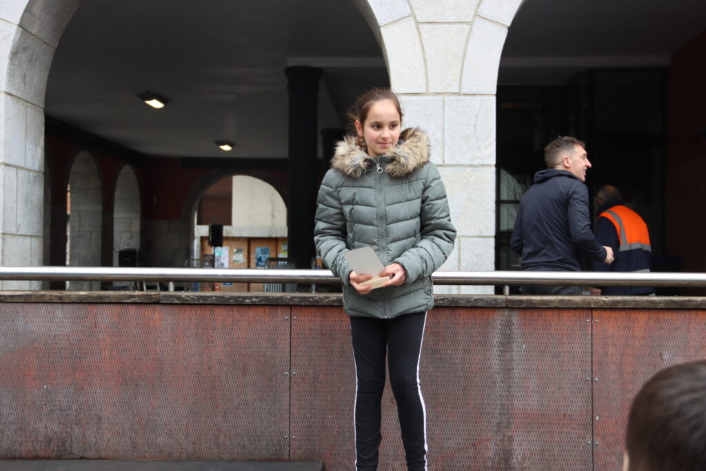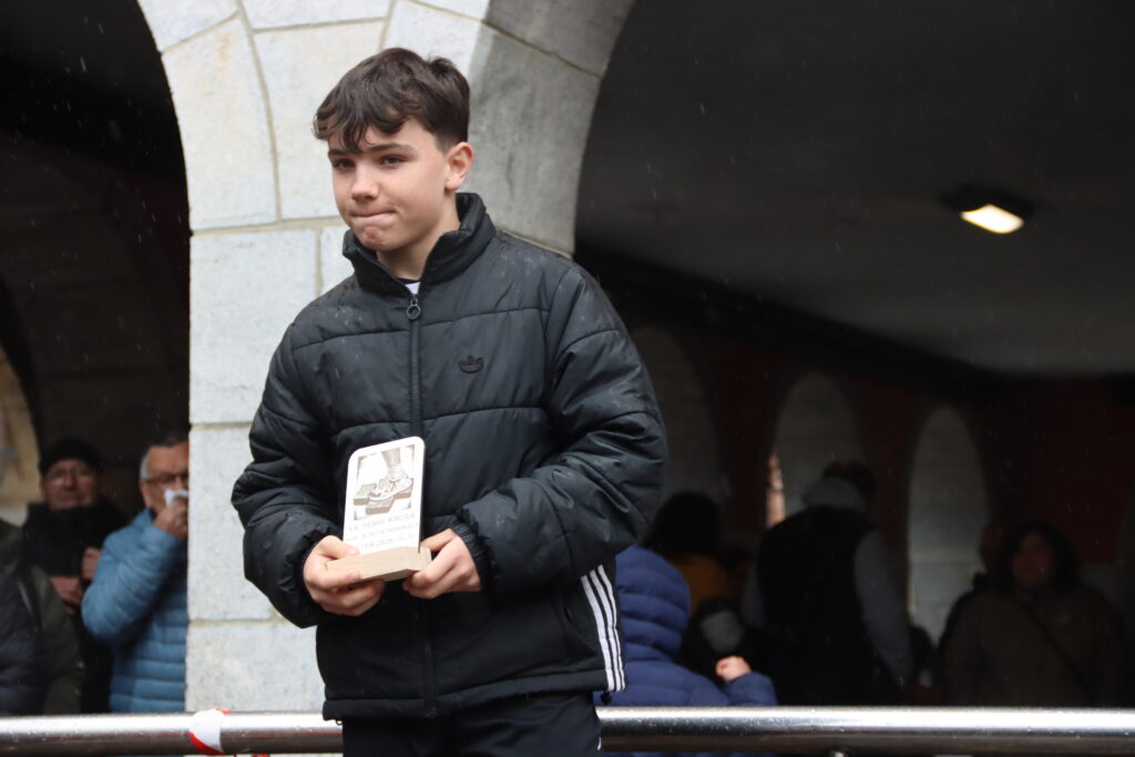 Goizean lehenak eskolarretako haur txikienak izan dira irteten. Gurasoek lagunduta egin dute ibilbidea, eta giro alaian bete dituzte herriko kaleak. Parte hartu duten haur guztiek domina jaso dute helmugan.