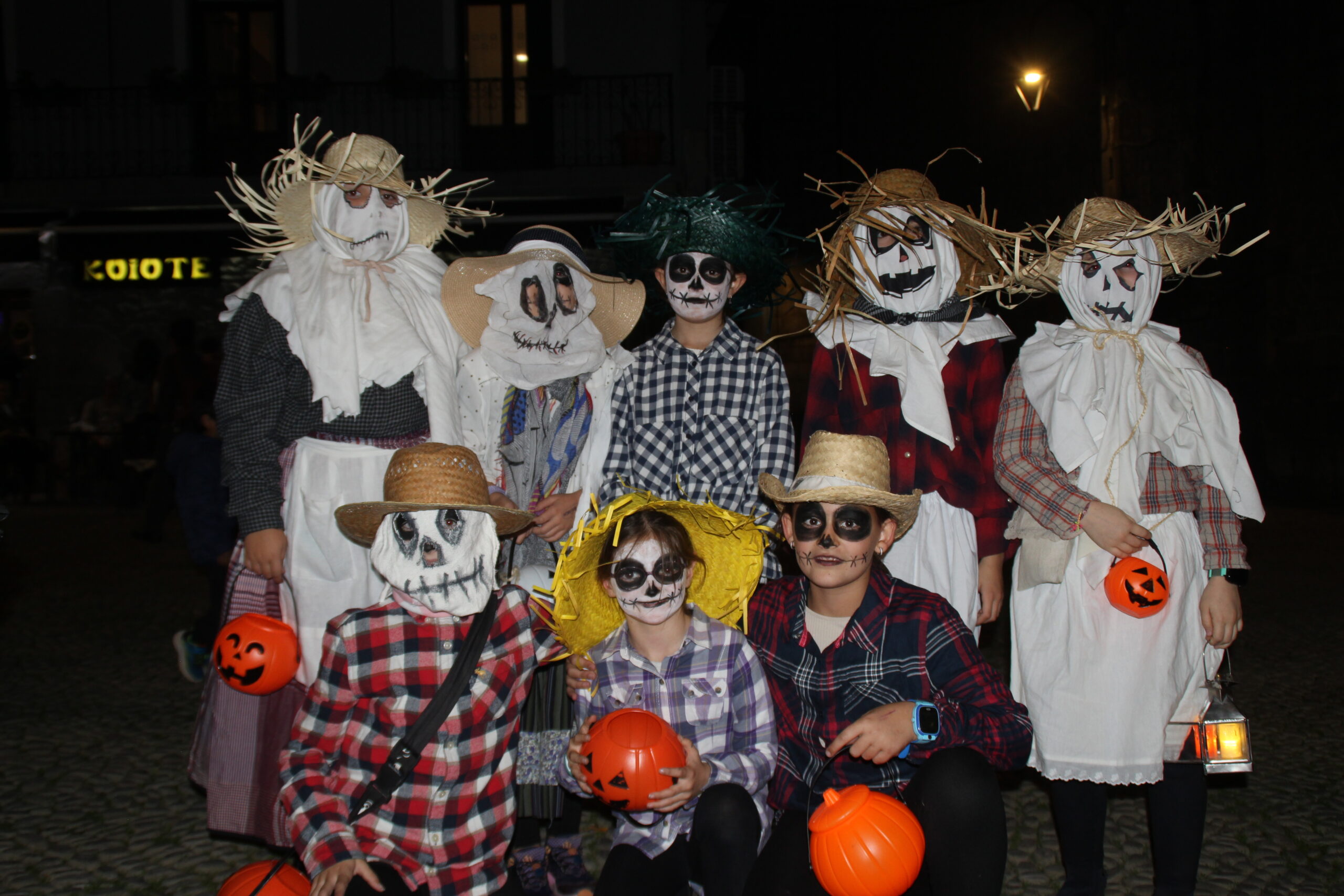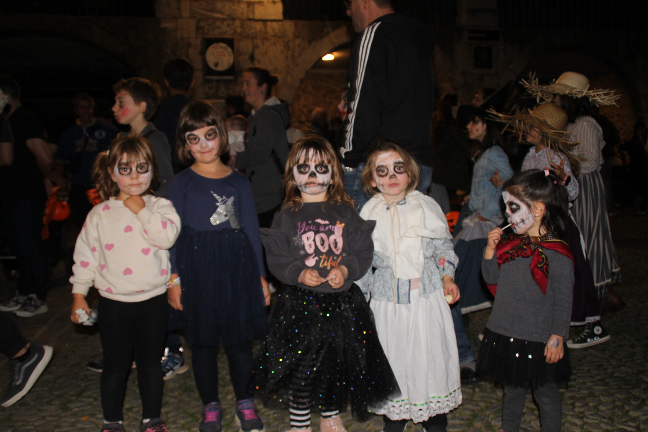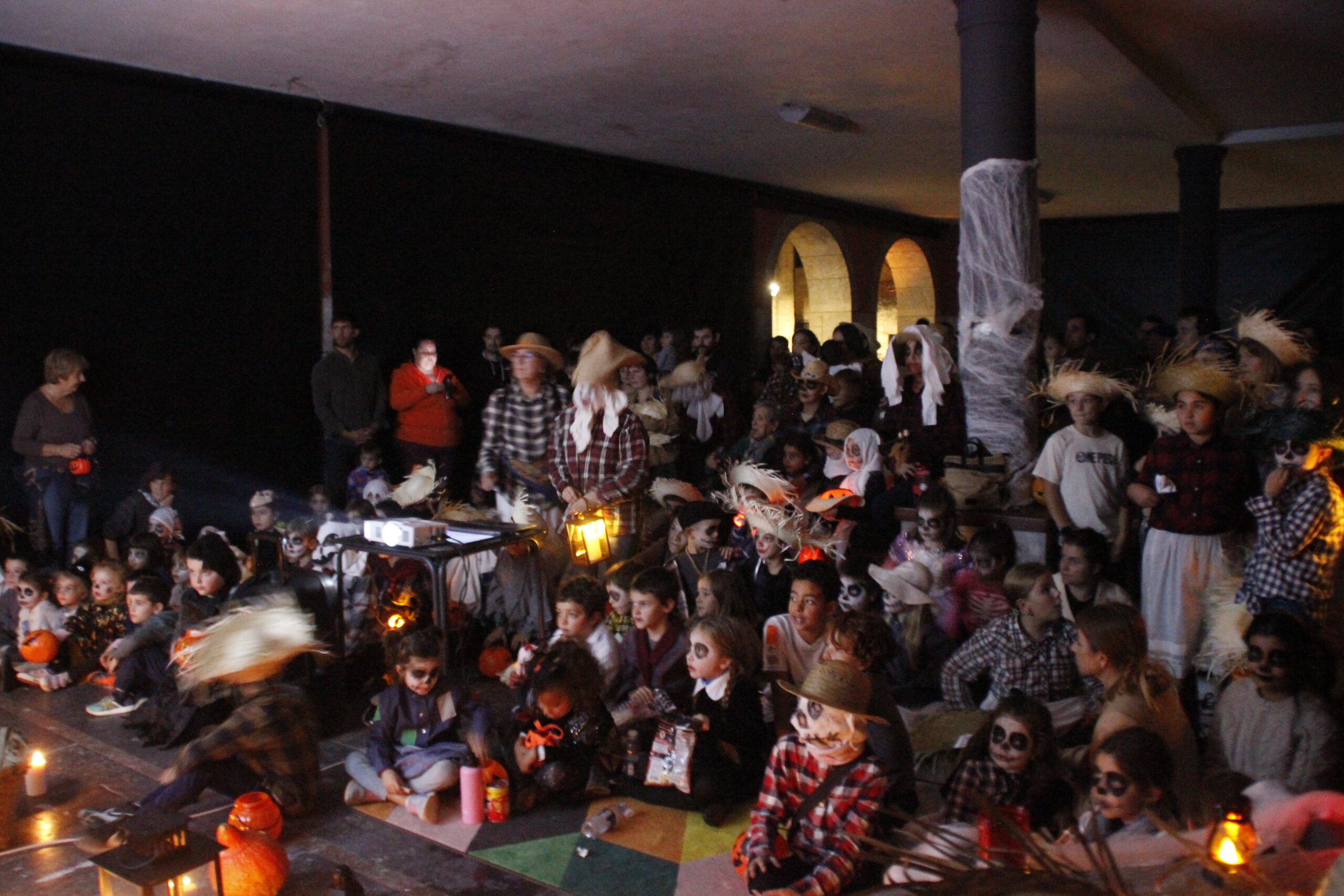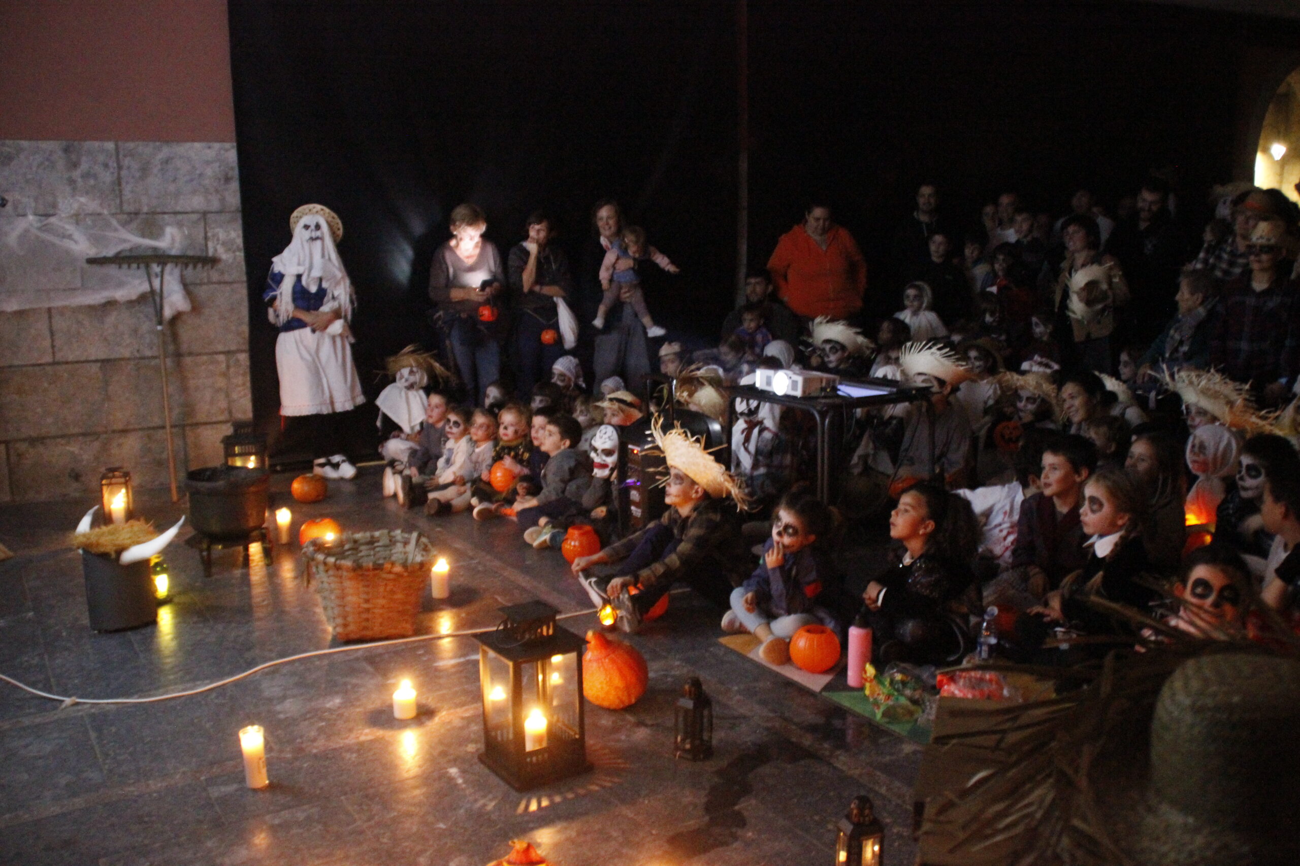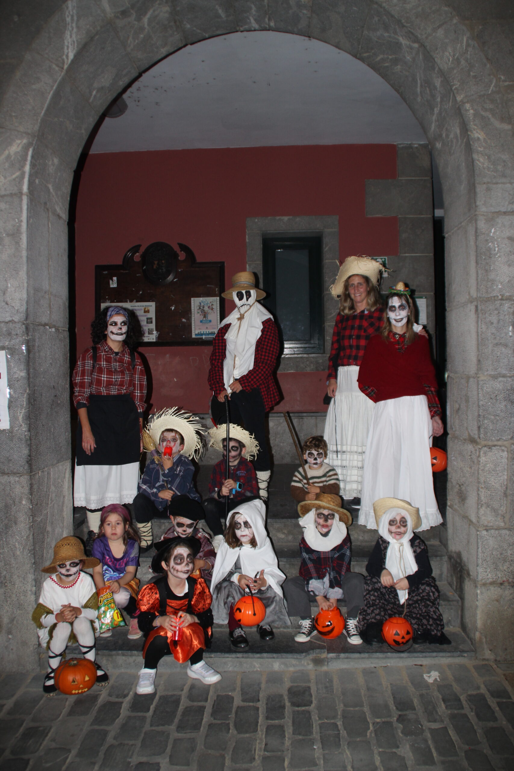 Gau Beltza ospatzeko, aurpegiak margotu zituzten lehenik, eta ondoren hilerrian bildu ziren, kalabazak eta kandelak eskuetan, kalejira isila egiteko plazaraino. Bideo eta abestien artean ibili ziren haur eta gaztetxoak udaletxe azpian, eta arratsaldea borobiltzeko, gaztaina erreak jan zituzten.