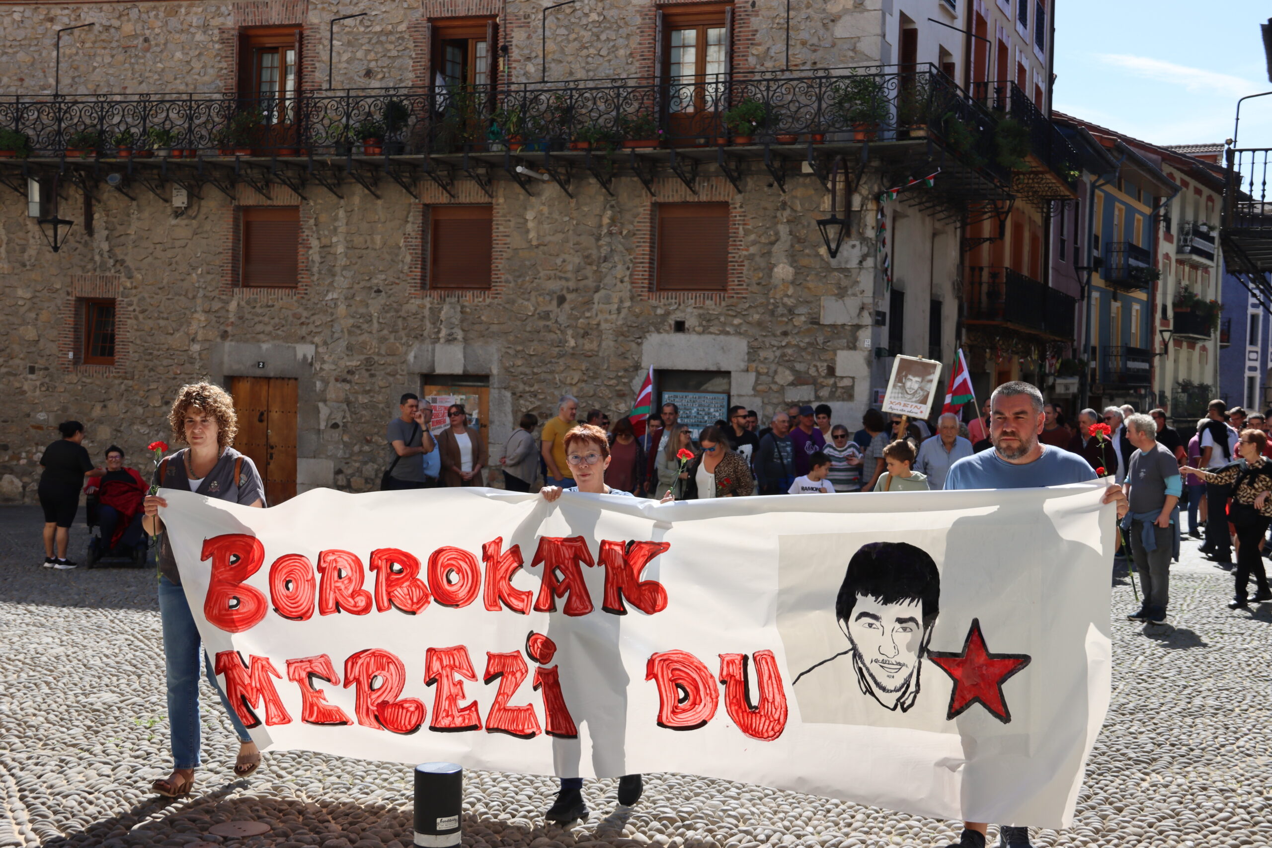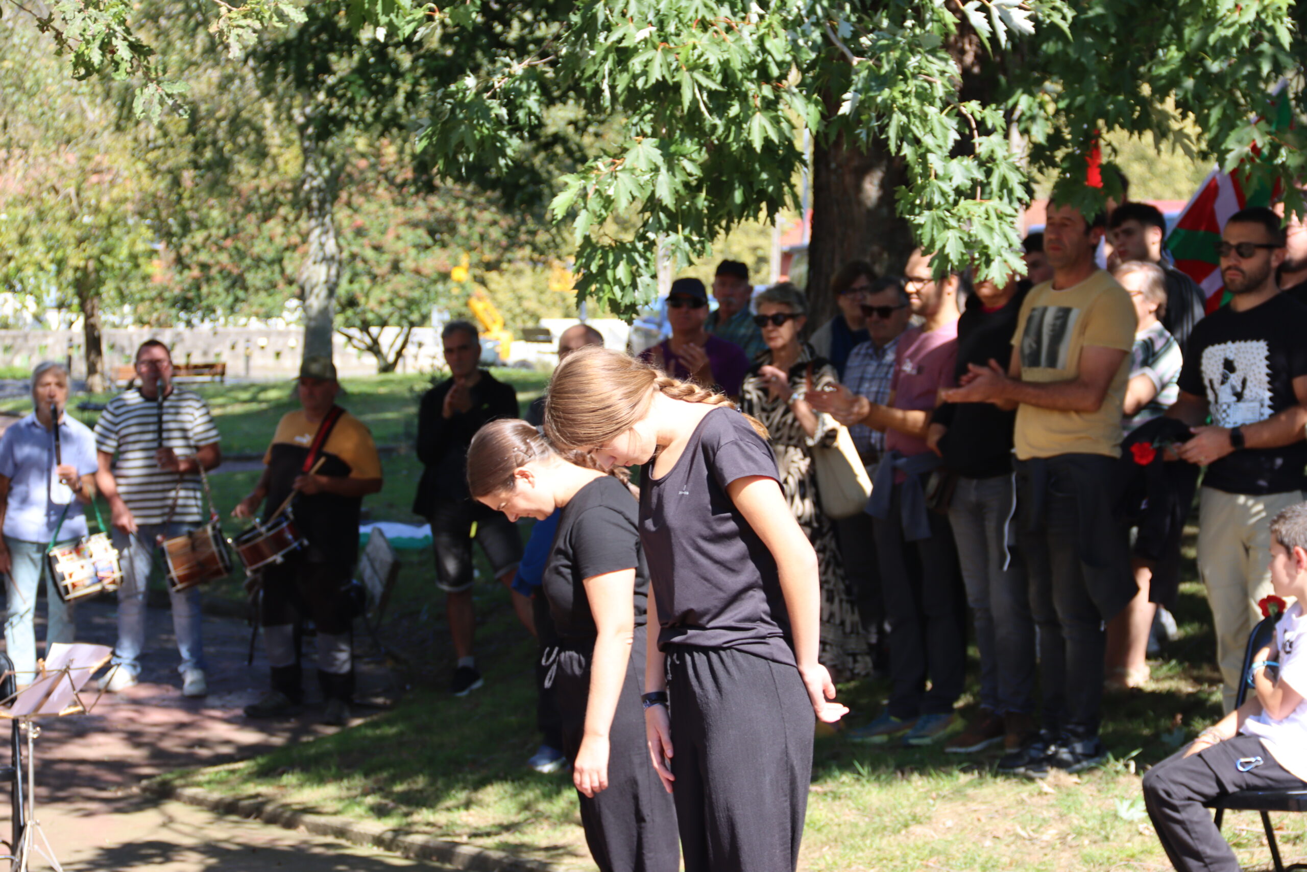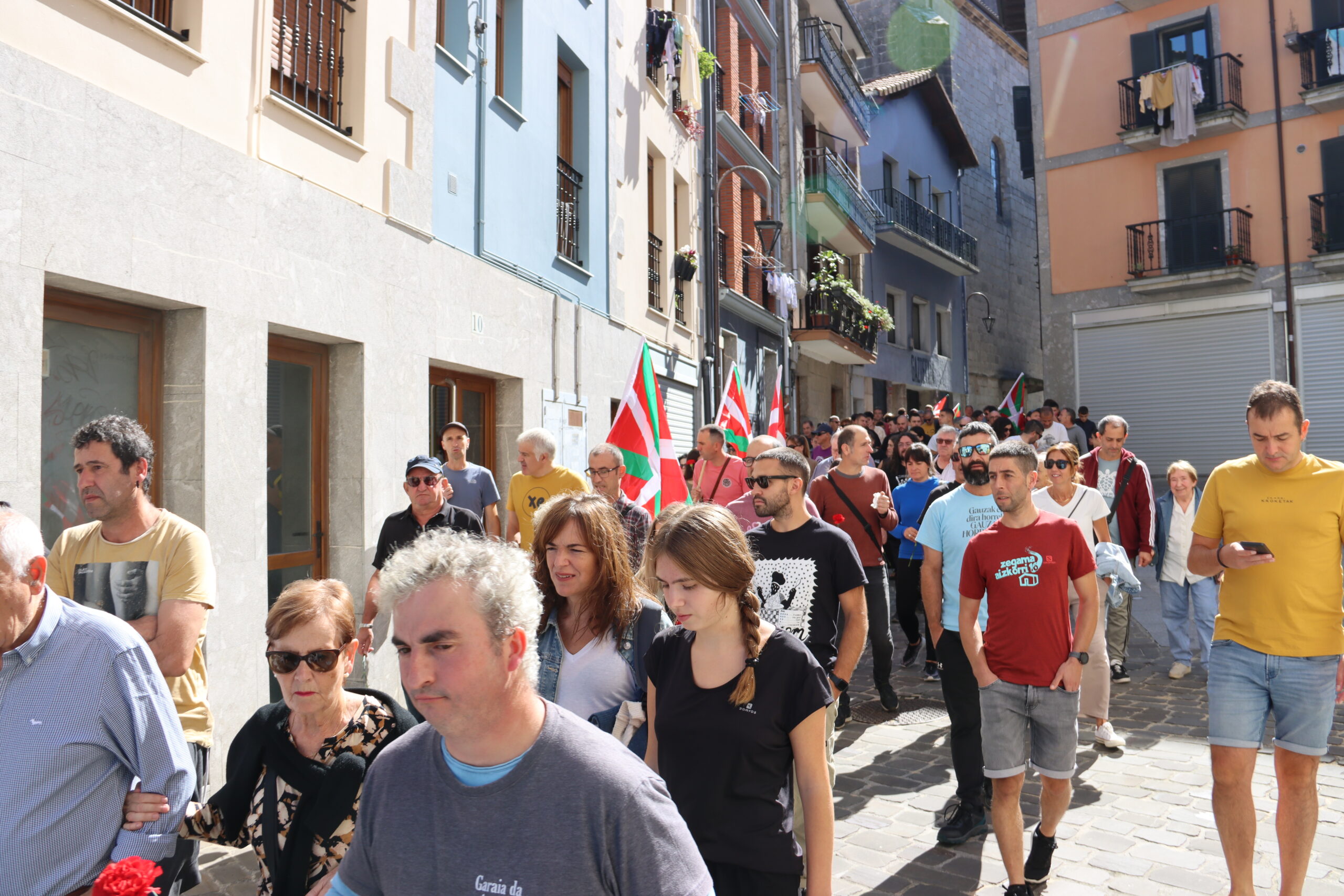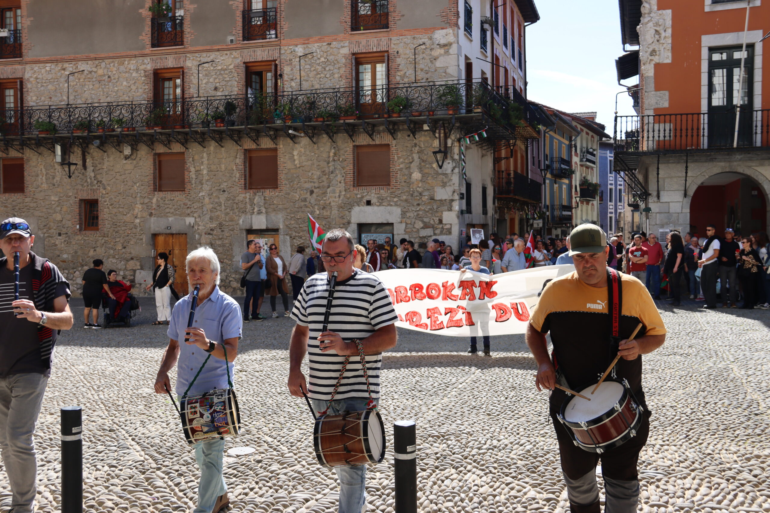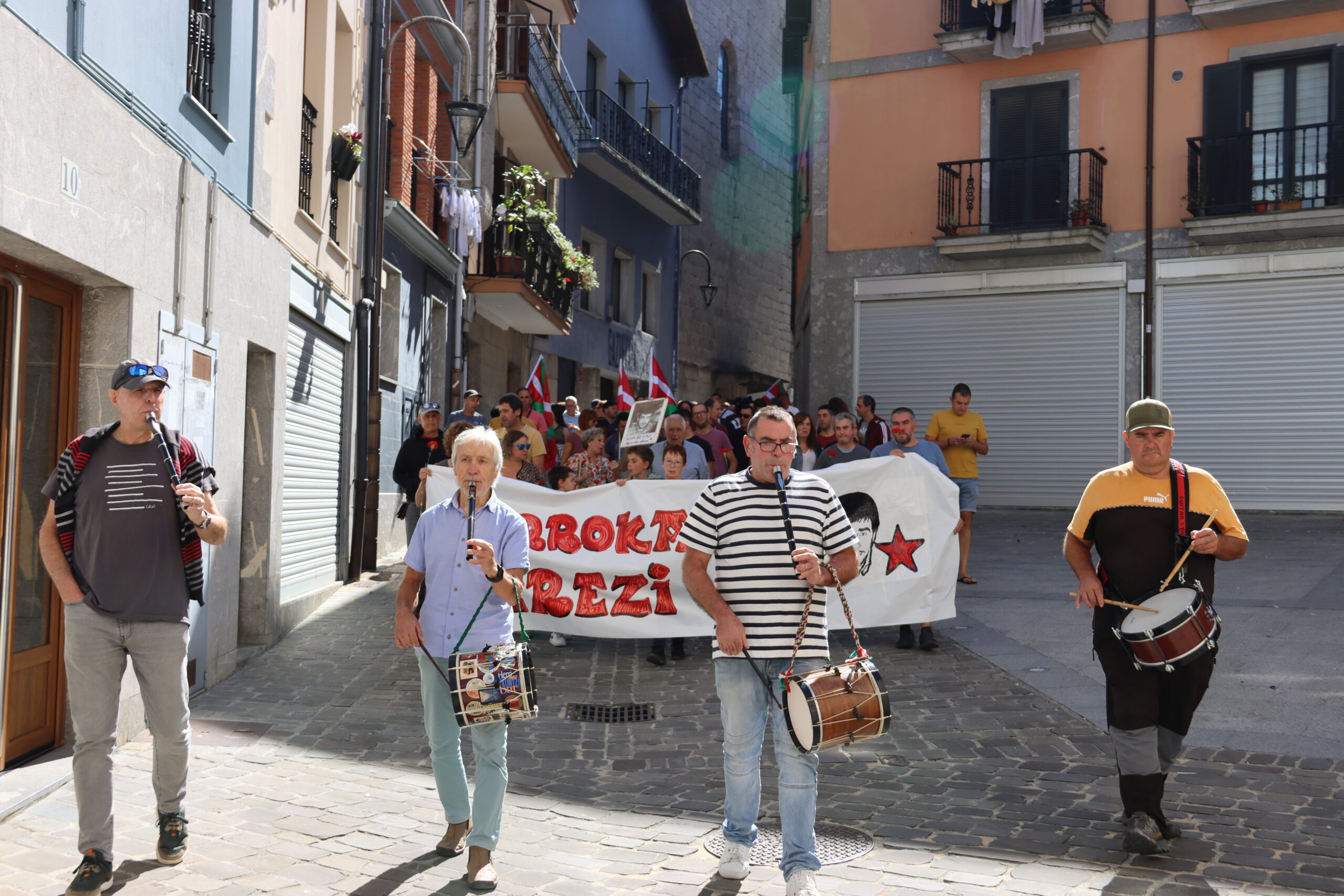 Hitzartzearekin, aldarrikapenekin, bertsoekin, kantuekin eta aurresku batekin osatu dute ekitaldia, lore eskaintzarekin bukatu eta berriro kalejiran plazara itzultzeko.