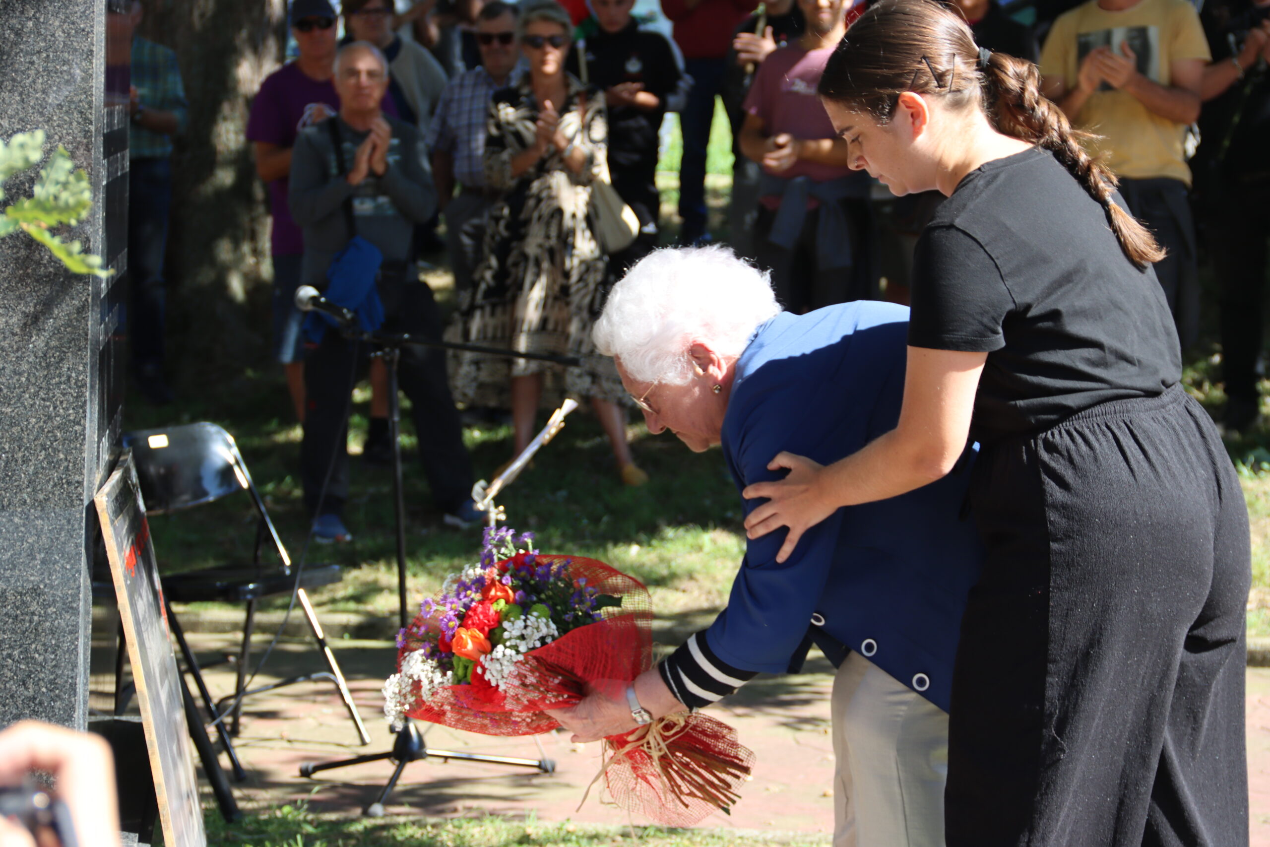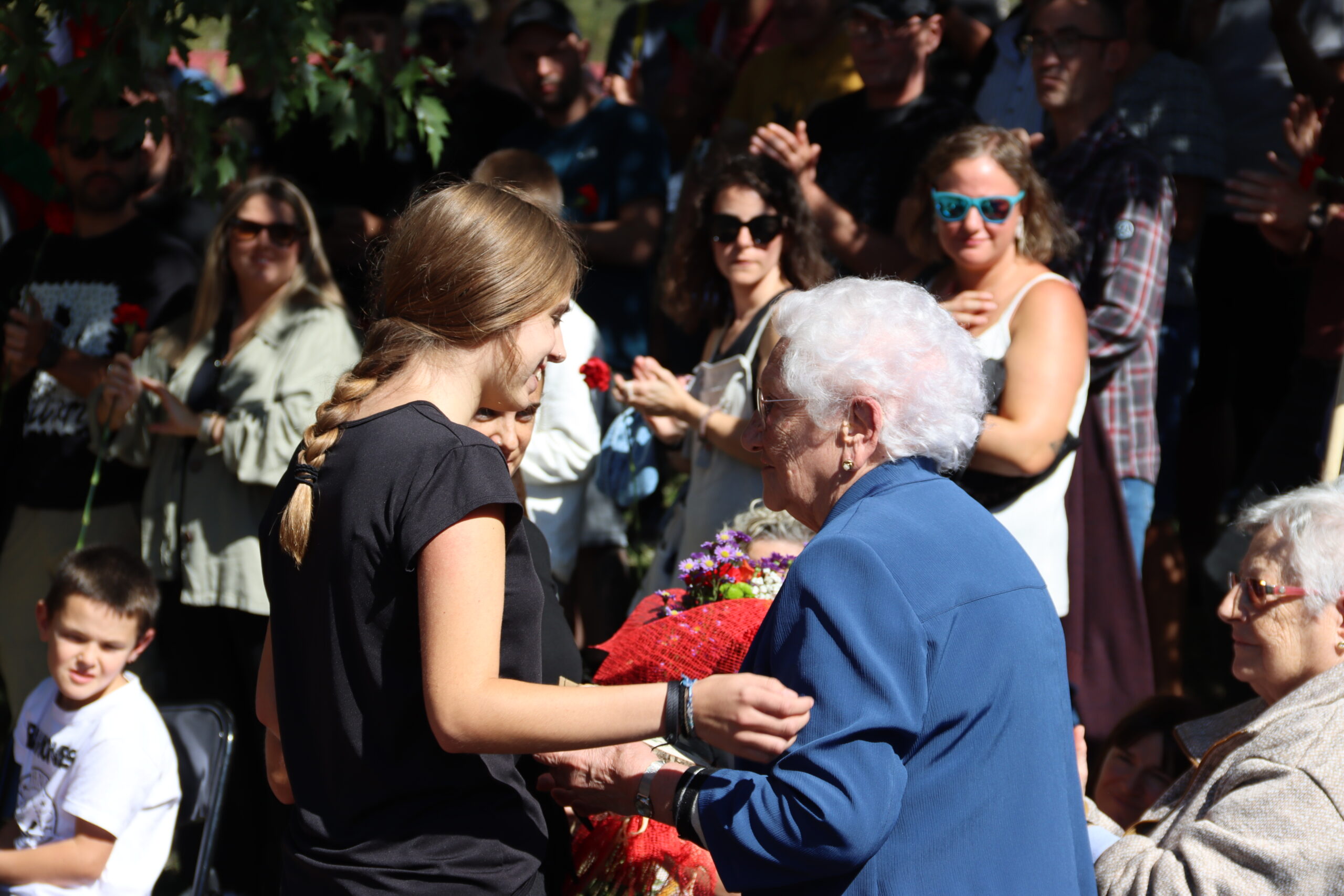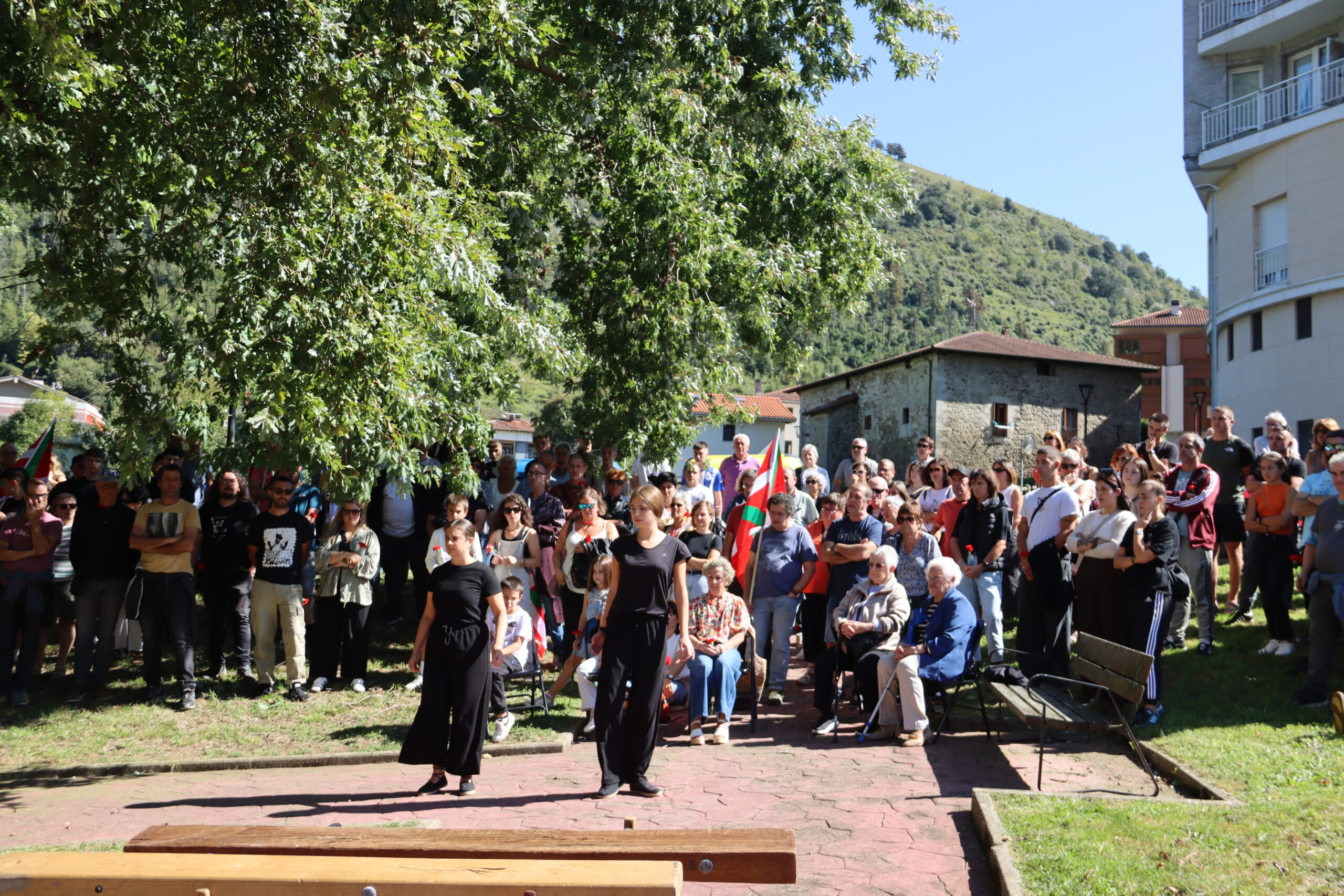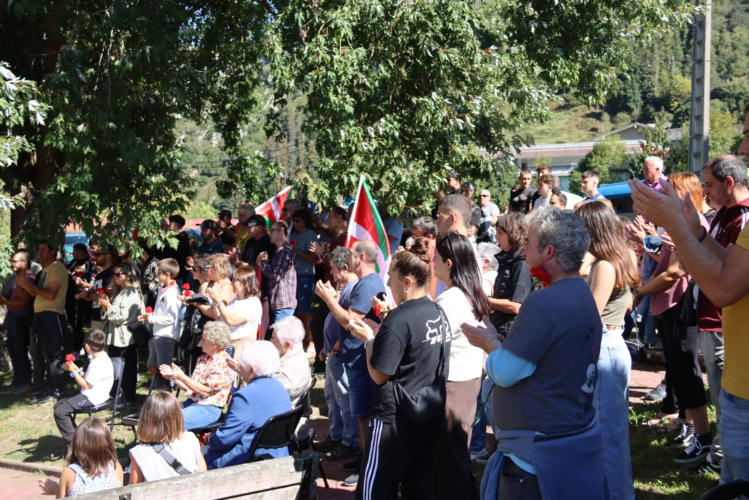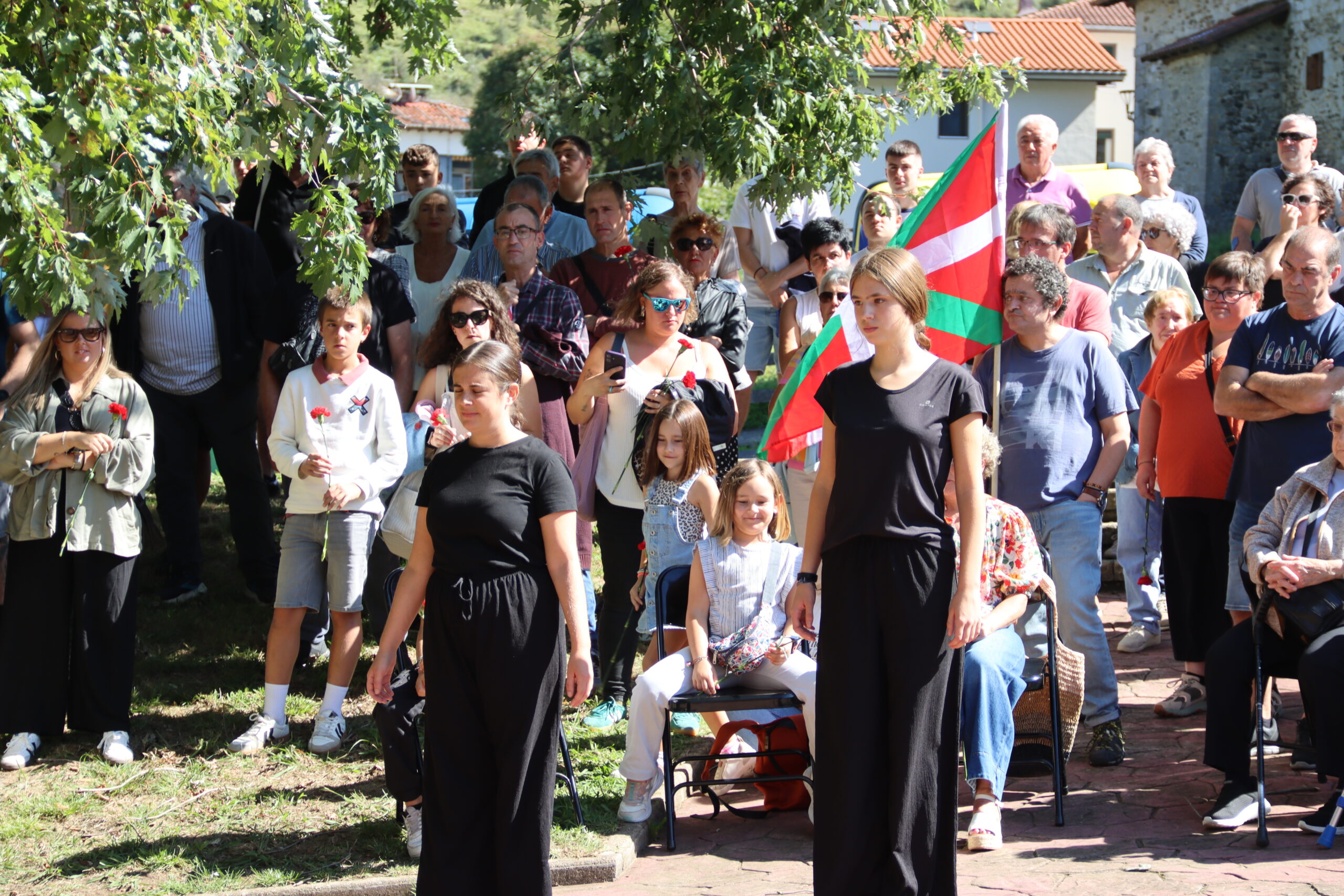 Hitzartzearekin, aldarrikapenekin, bertsoekin, kantuekin eta aurresku batekin osatu dute ekitaldia, lore eskaintzarekin bukatu eta berriro kalejiran plazara itzultzeko.