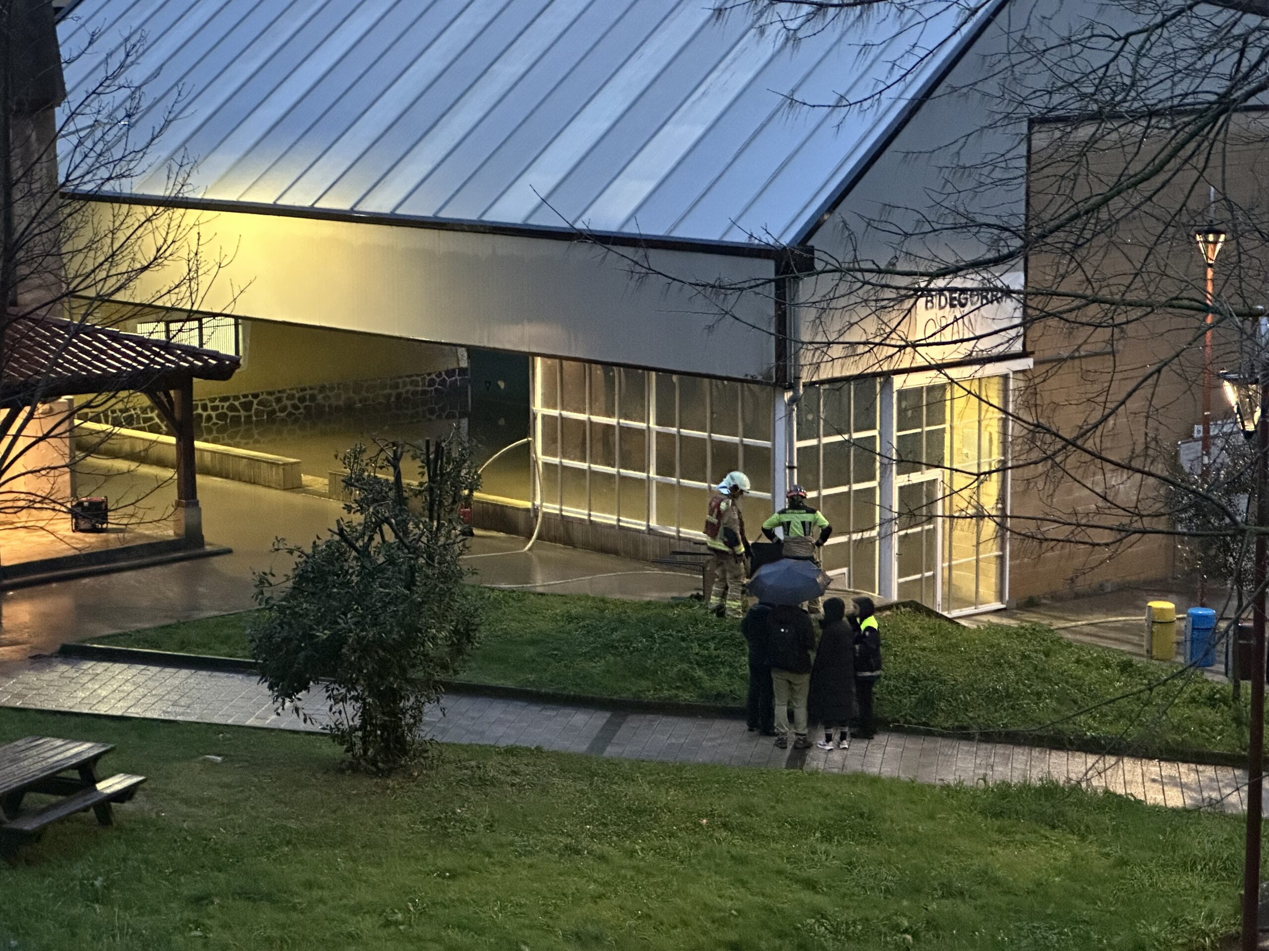 Udaltzainei abisua pasa eta jarraian, suhiltzaileak bertaratu dira lekura, eta haiek arduratu dira kirol instalazioa hustu eta egoera kontrolpean jartzeaz.