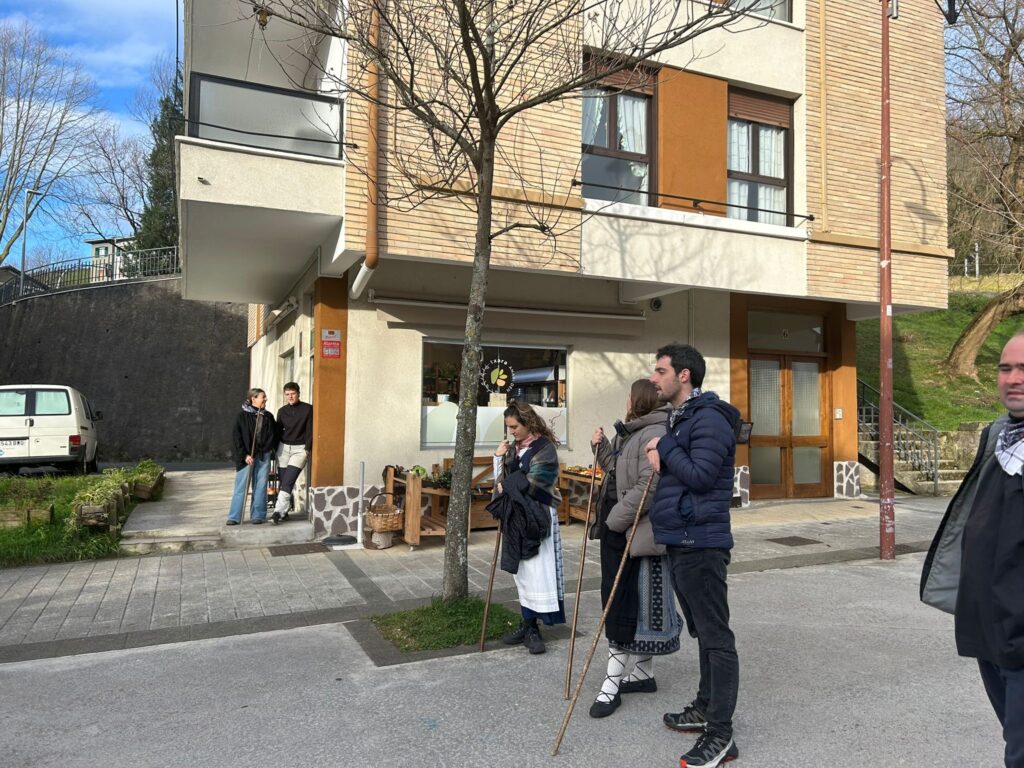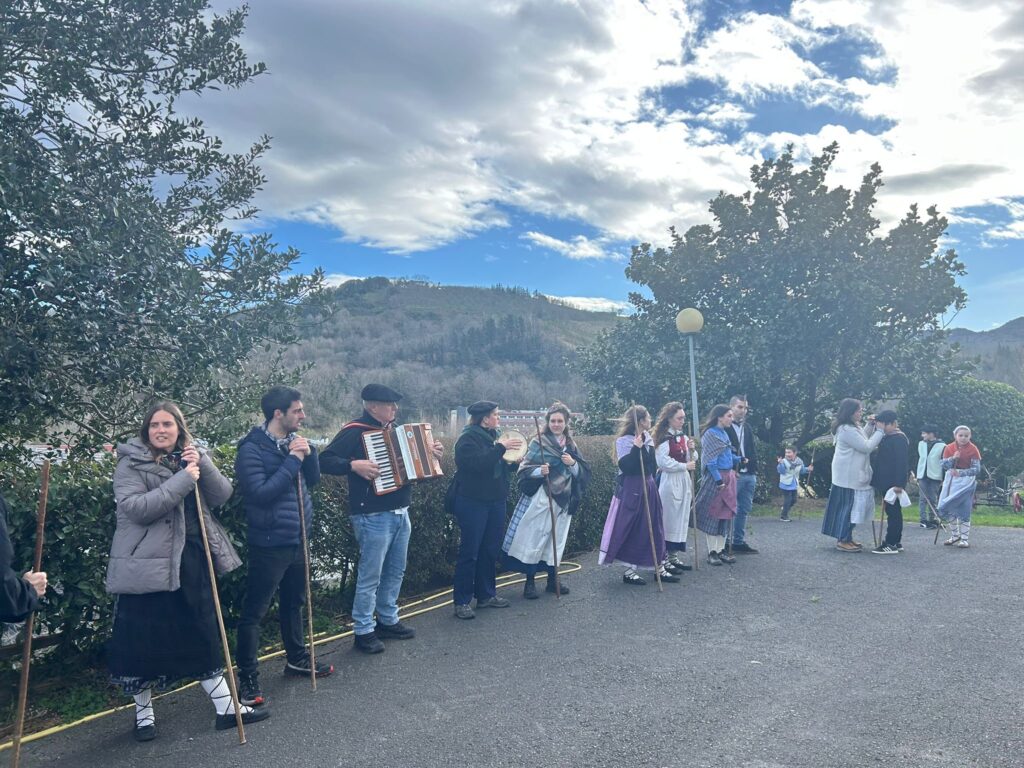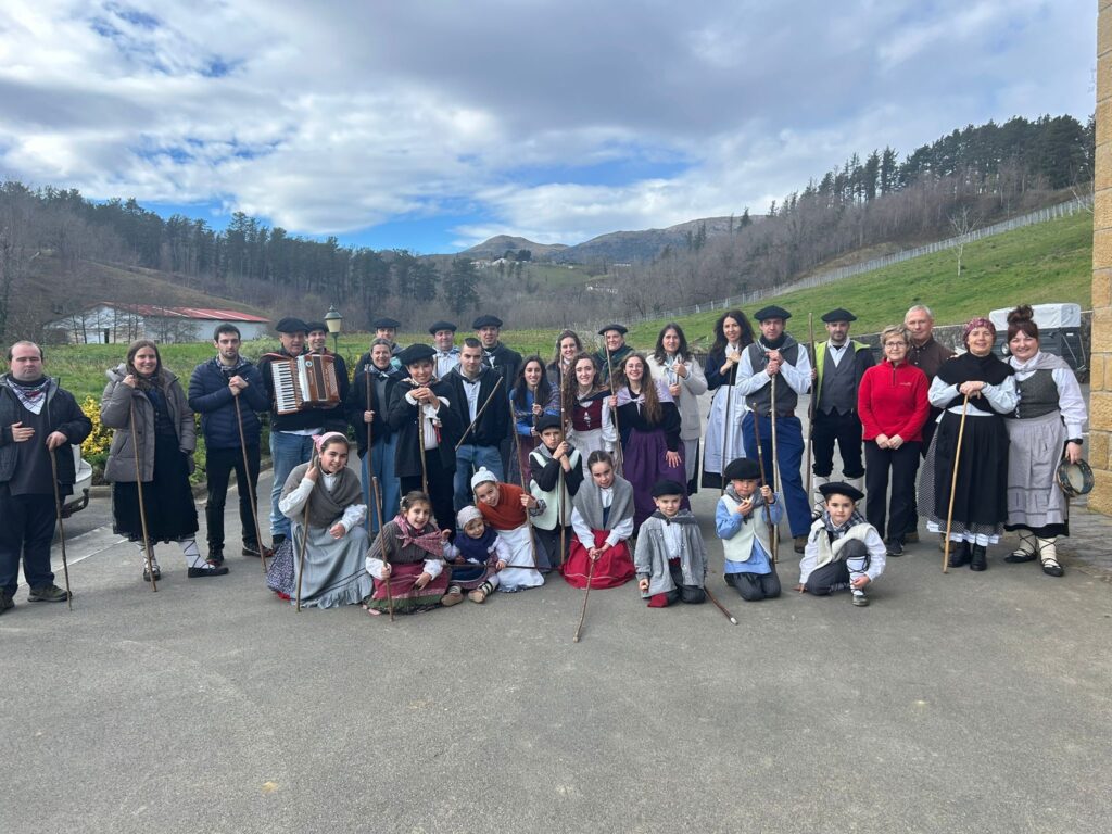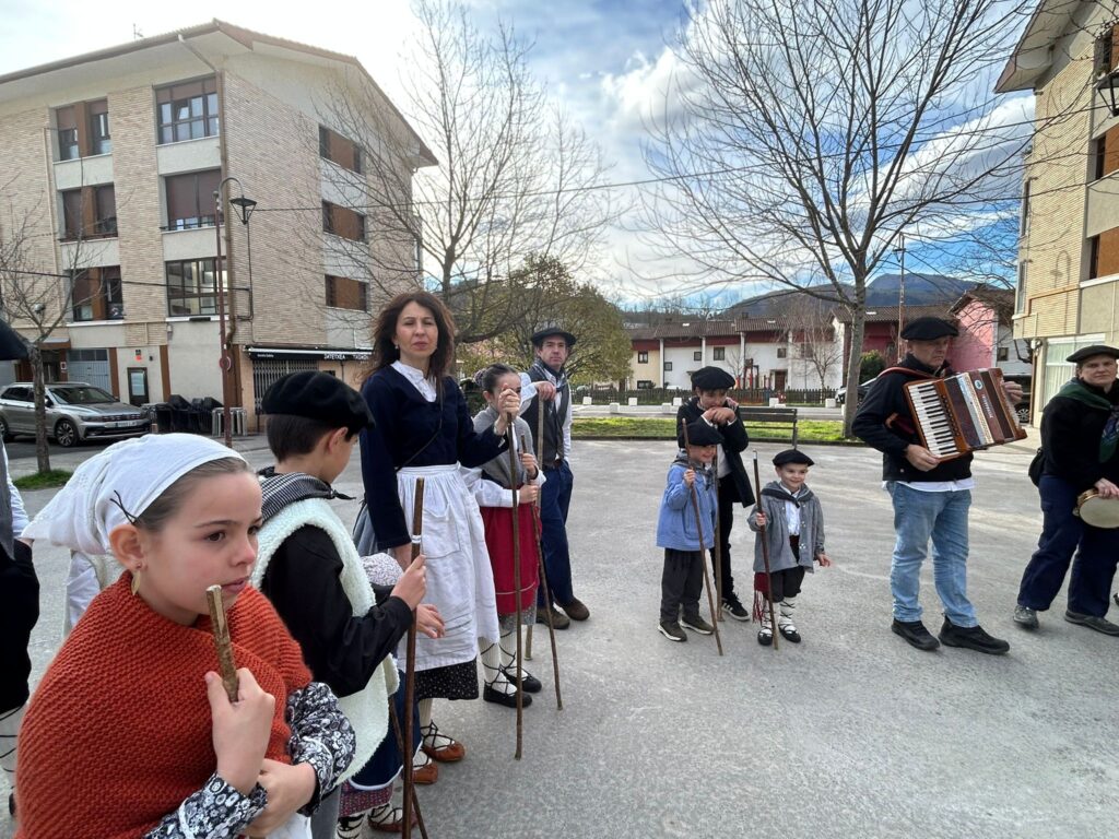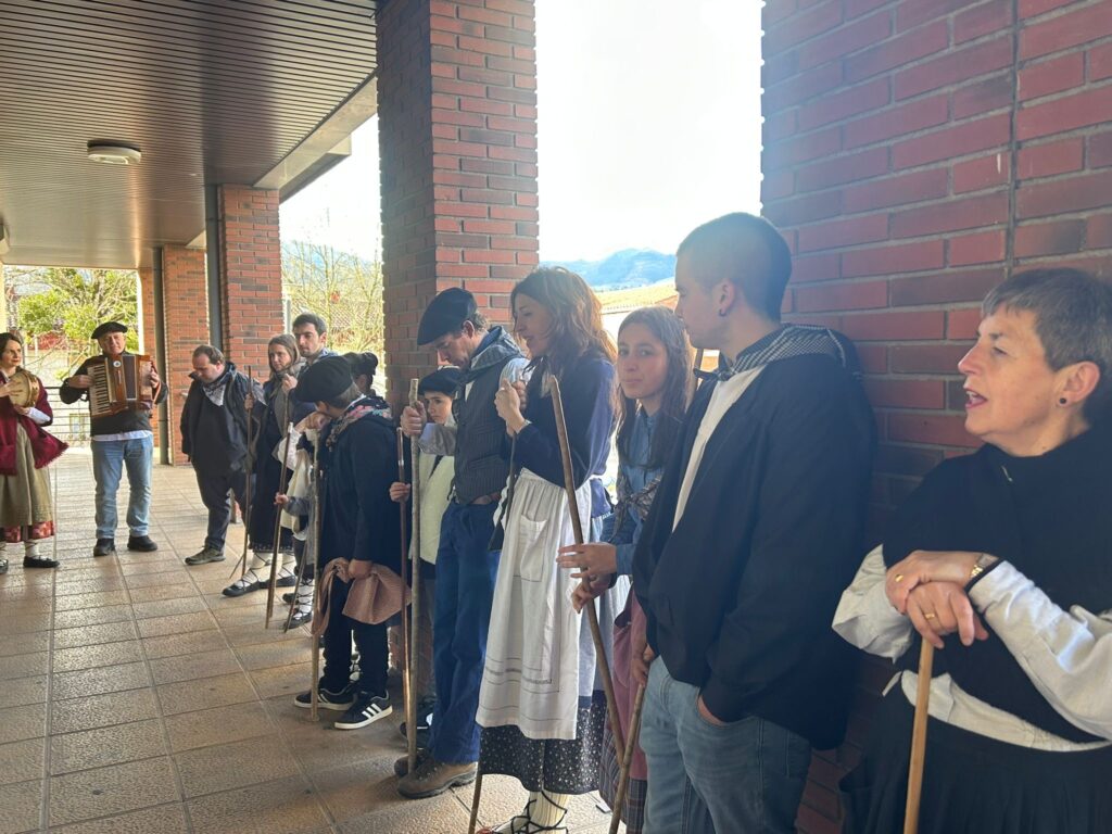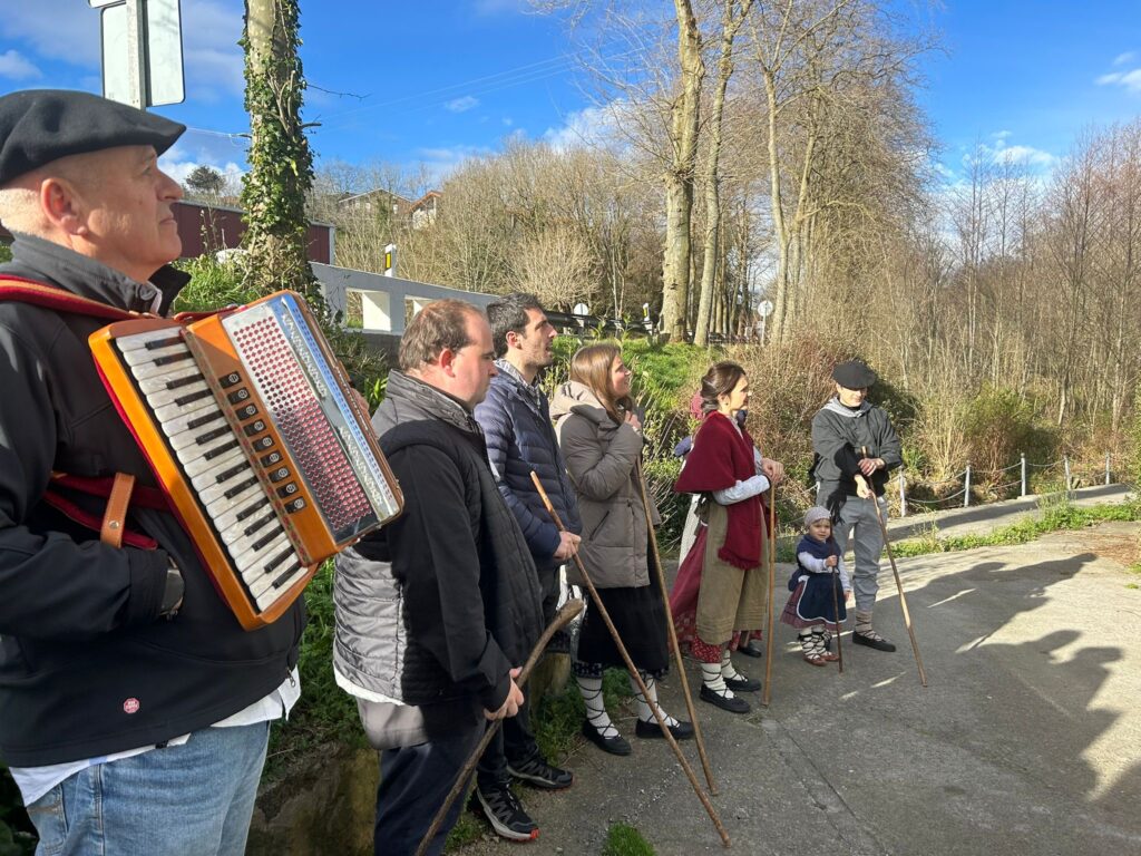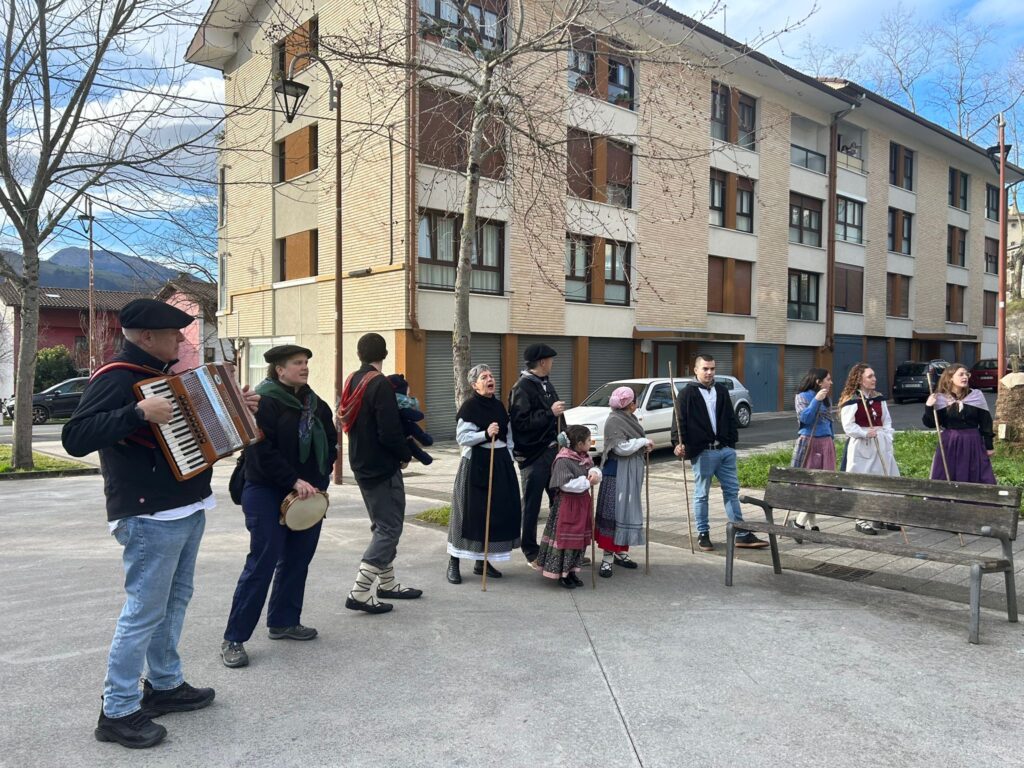 Arroabean ez dute kale egin Santa Agedako ospakizunetan. Lurra astinduz ekin diote zapatuari, izan ere, 10:00etan hasita, auzoko baserri eta etxeetan barrena ibili dira, makilak eskuan hartuta kopla kantari. Giro eguzkitsua lagun, trikitilarien eta Eneritz Artetxe zein Xabat Illarregi bertsolarien laguntzarekin goiza eman ondoren, eguerdian dilista-jana egin dute elkartean. Behin indarrak hartuta, arratsaldean eskean jarraituko dute.