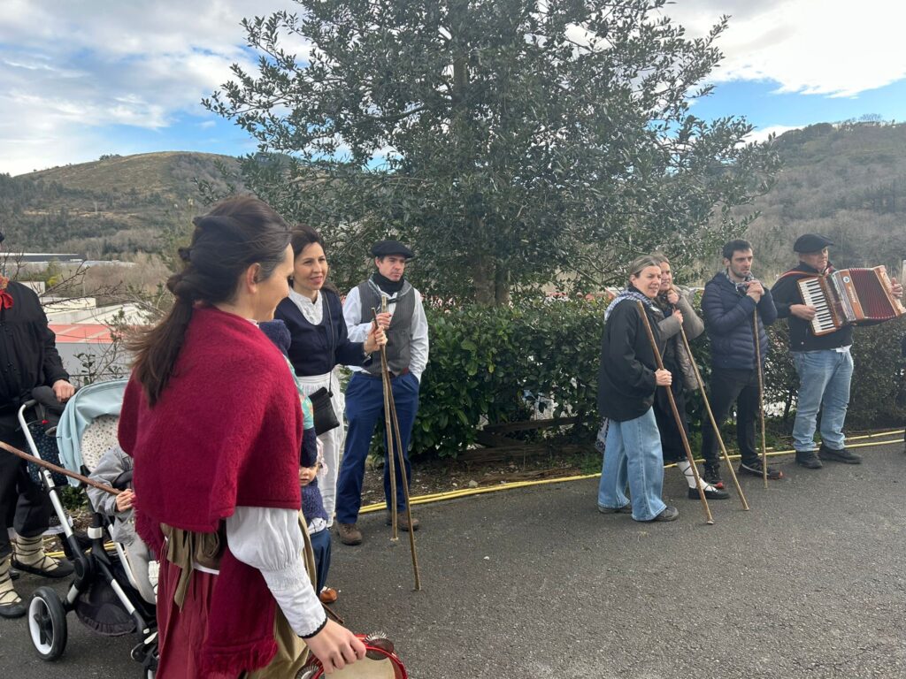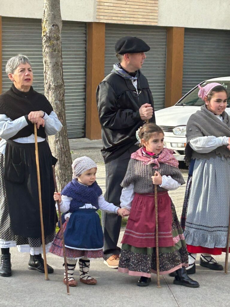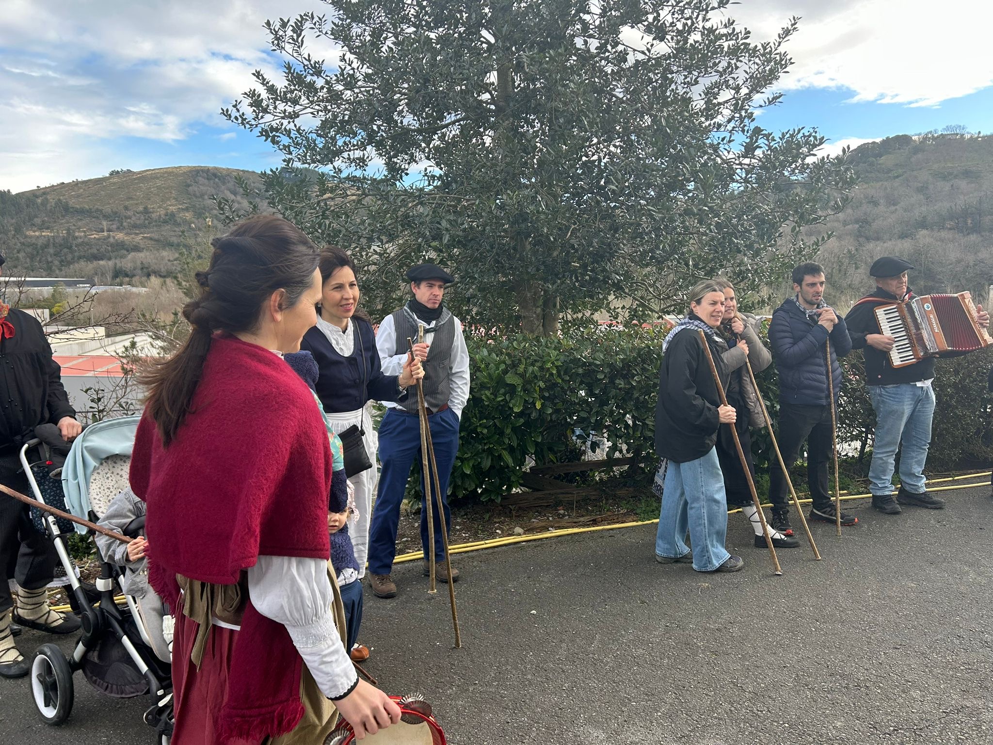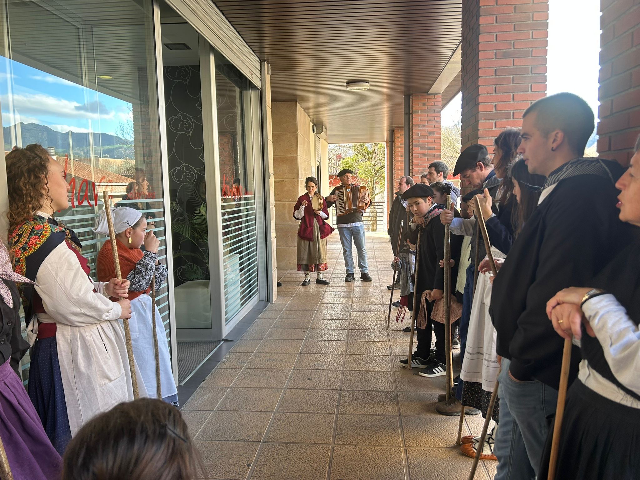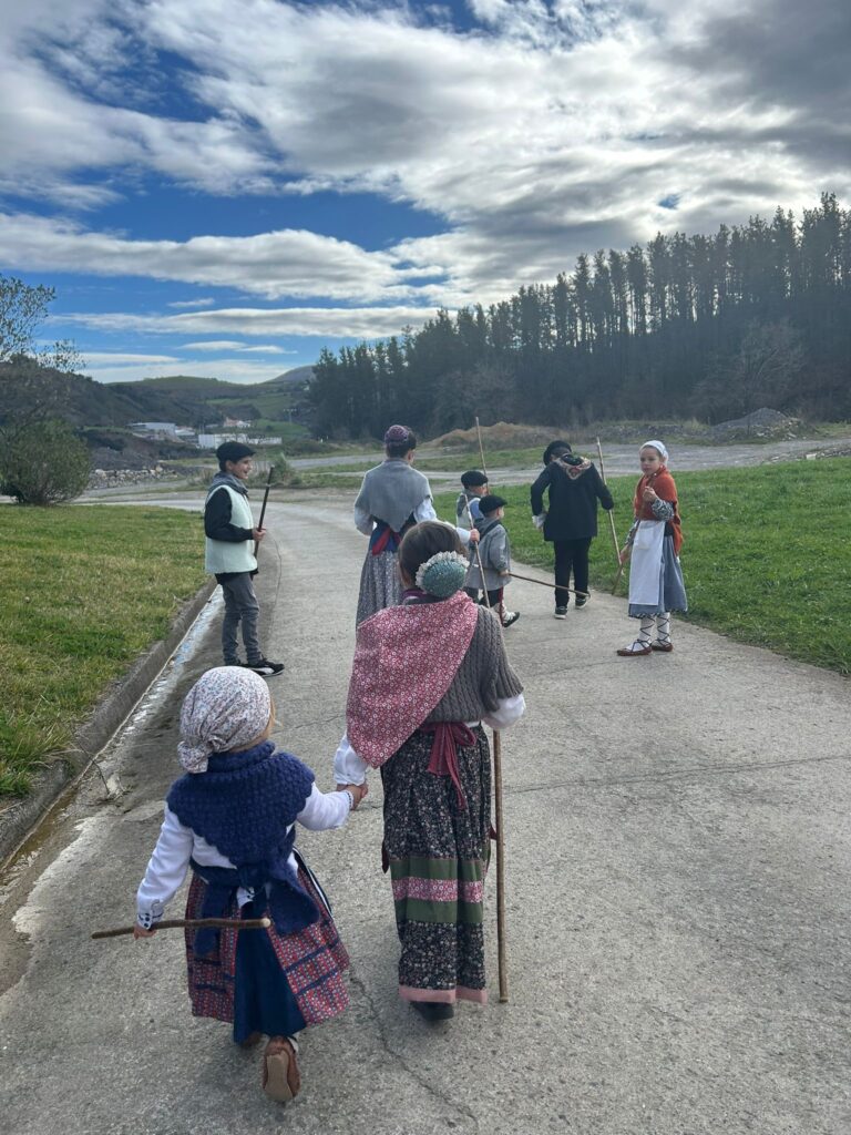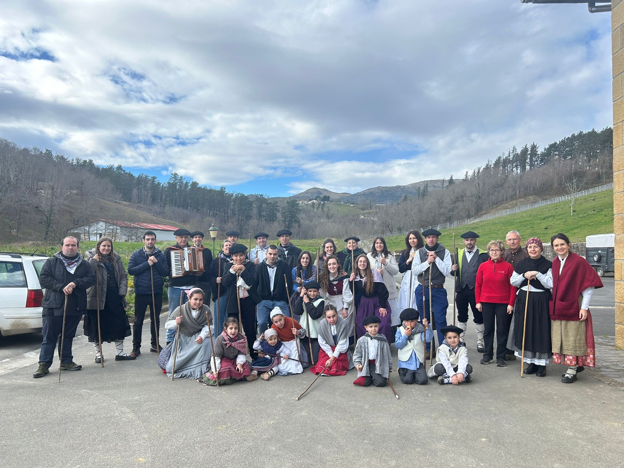 Arroabean ez dute kale egin Santa Agedako ospakizunetan. Lurra astinduz ekin diote zapatuari, izan ere, 10:00etan hasita, auzoko baserri eta etxeetan barrena ibili dira, makilak eskuan hartuta kopla kantari. Giro eguzkitsua lagun, trikitilarien eta Eneritz Artetxe zein Xabat Illarregi bertsolarien laguntzarekin goiza eman ondoren, eguerdian dilista-jana egin dute elkartean. Behin indarrak hartuta, arratsaldean eskean jarraituko dute.