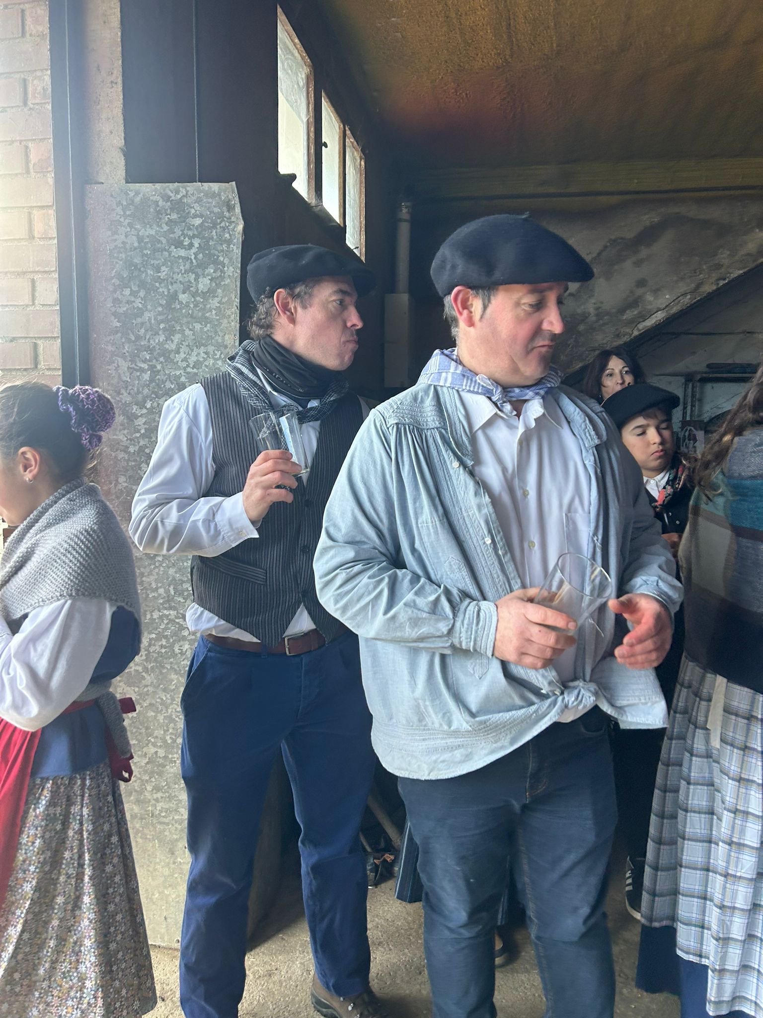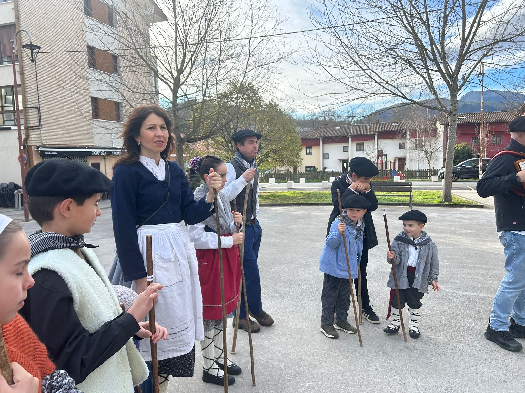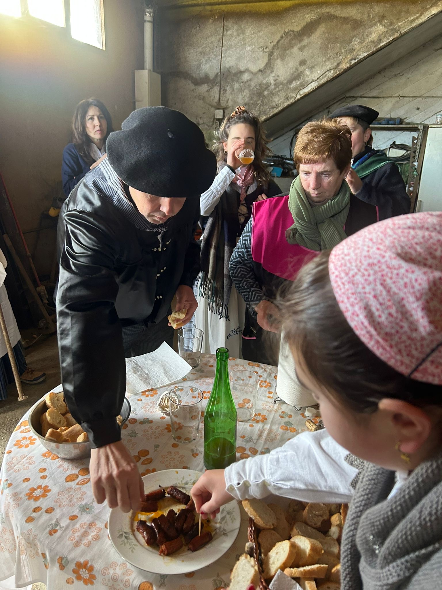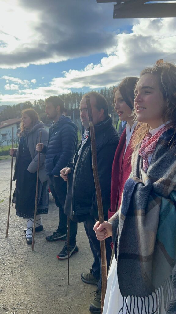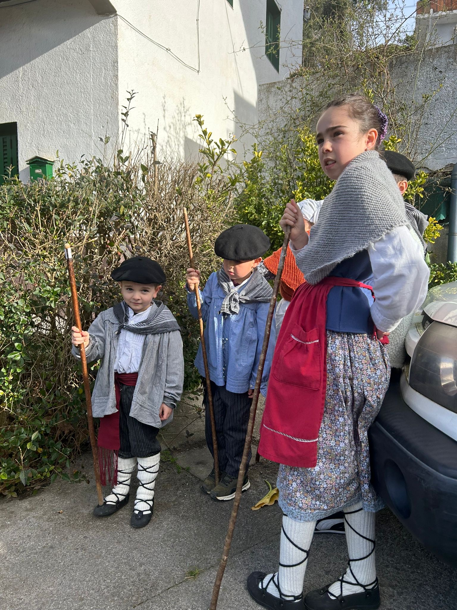 Arroabean ez dute kale egin Santa Agedako ospakizunetan. Lurra astinduz ekin diote zapatuari, izan ere, 10:00etan hasita, auzoko baserri eta etxeetan barrena ibili dira, makilak eskuan hartuta kopla kantari. Giro eguzkitsua lagun, trikitilarien eta Eneritz Artetxe zein Xabat Illarregi bertsolarien laguntzarekin goiza eman ondoren, eguerdian dilista-jana egin dute elkartean. Behin indarrak hartuta, arratsaldean eskean jarraituko dute.
