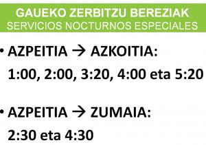 — 2017-01-17Urtarrilaren 19an gaueko zerbitzu berezia eskainiko du La Guipuzcoanak. Azpeititik Zestoara itzultzeko