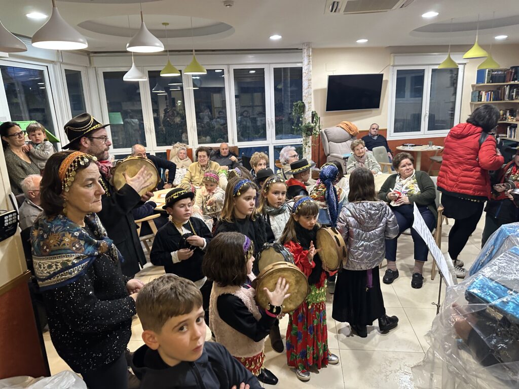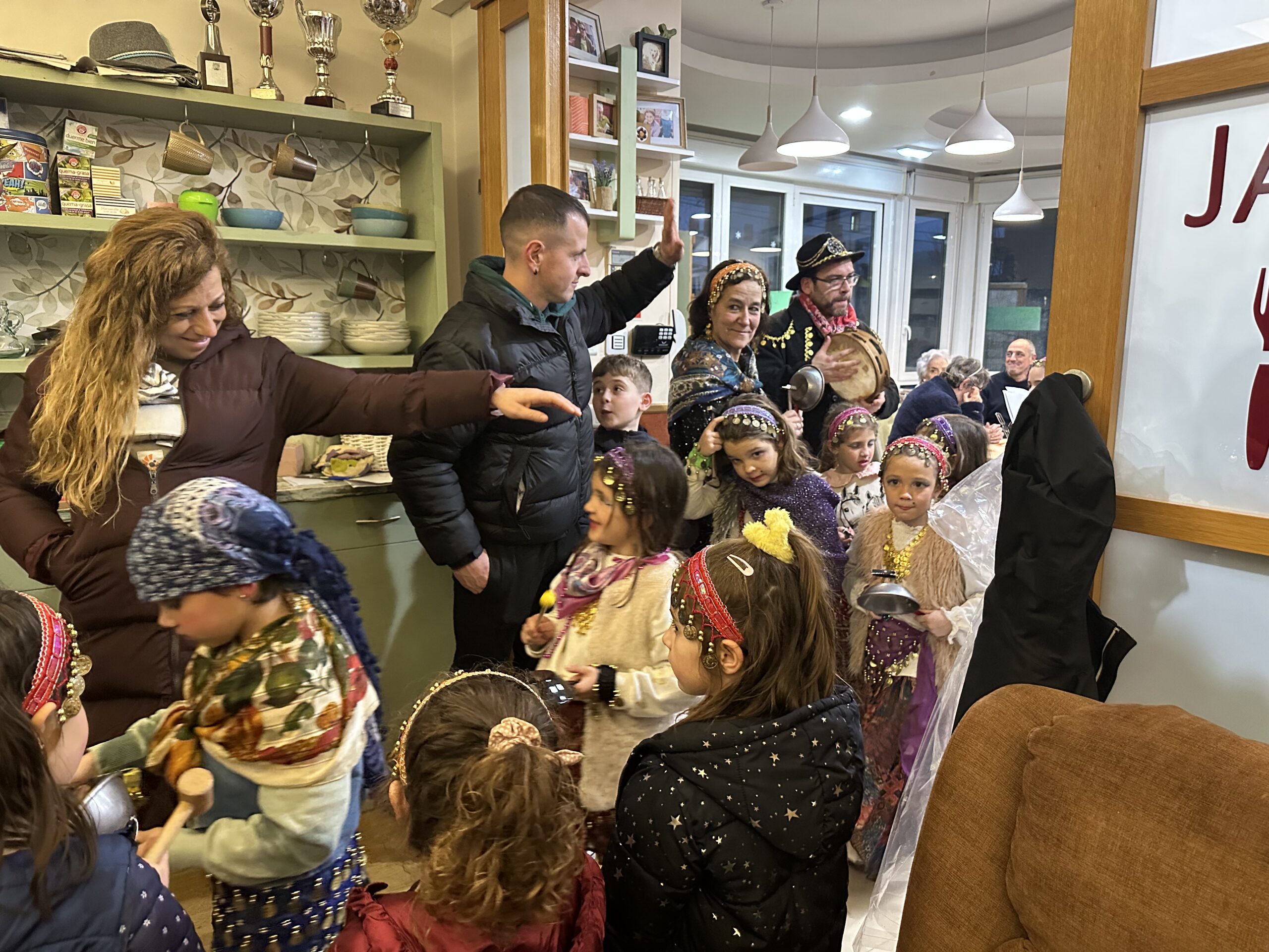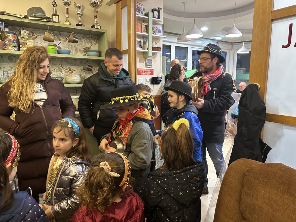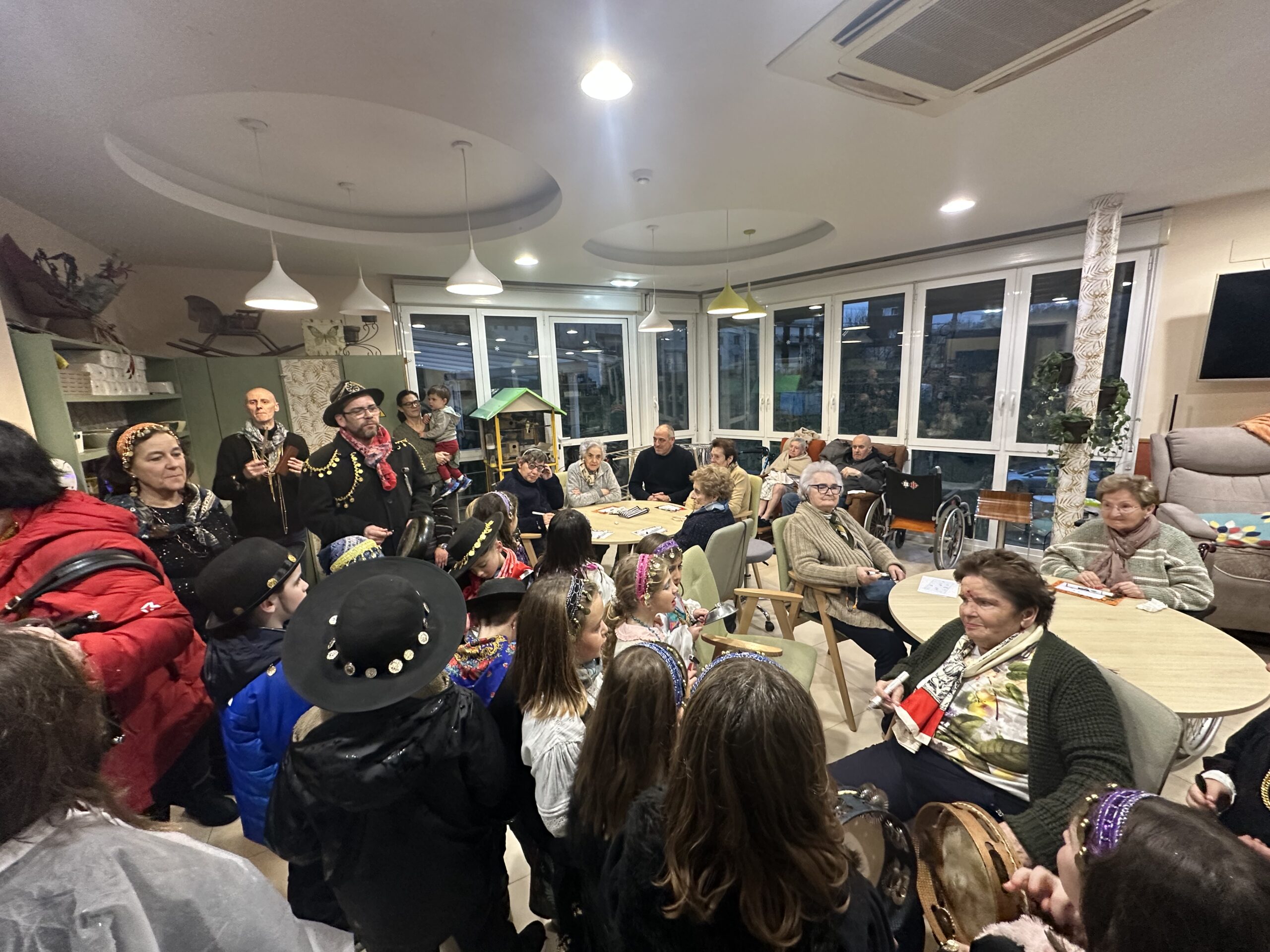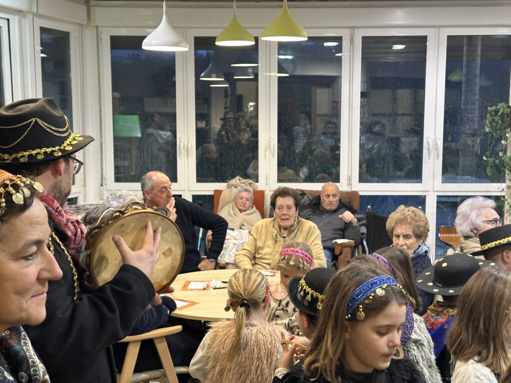 Trikitixa eta panderoaren laguntzaz, Kaldereroen ohiturazko kantak eskaini zituzten, eta bi egoitzetan zein bien arteko ibilbidean haurrek sartagiei eraginez iragarri zituzten ate joka dauden inauteriak.