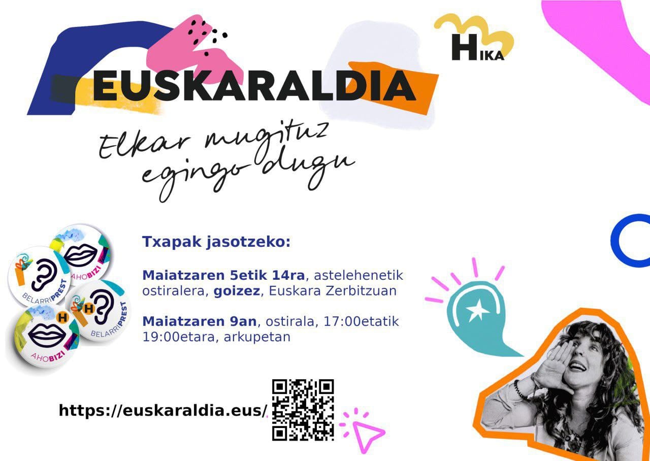 Bestalde, ostiral honetan, maiatzaren 9an, arkupetan egingo da txapa banaketa, arratsaldeko 17:00etatik 19:00tara bitartean.