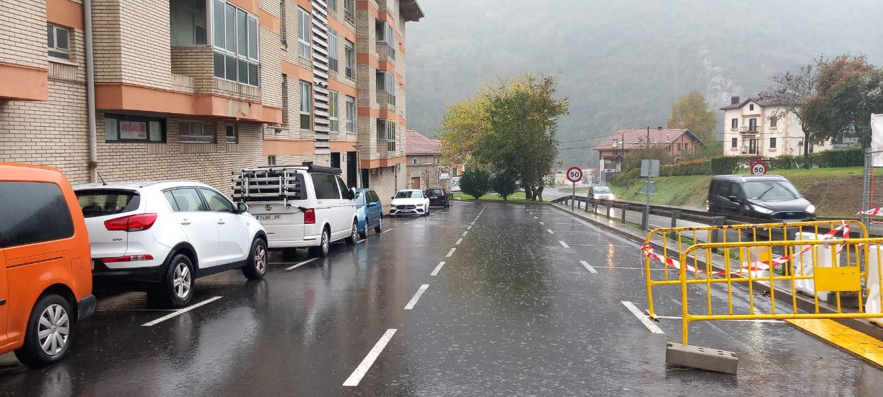 Kiroldegiko estalpeko egurrezko zazpi habe handienak dagoeneko jarri dituzte eta ondorioz Ipintza kaleko aparkalekua zabaldu da gaur goizean zehar. Donostia alderako autobus geltokirako sarbidea ere ohiko lekutik zabalik dago.