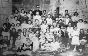Zazpi anai-arreba ginen, sei neska eta mutil bat, ni bosgarrena. Eskolan hasi arte ez dut gogoan kalera jaisten ginenik. Eskolan zazpi urterekin hasten zen orduan. 62 neska eta 40 mutil ibiltzen ginen, mutilak maisuarekin eta gu maistrarekin.
