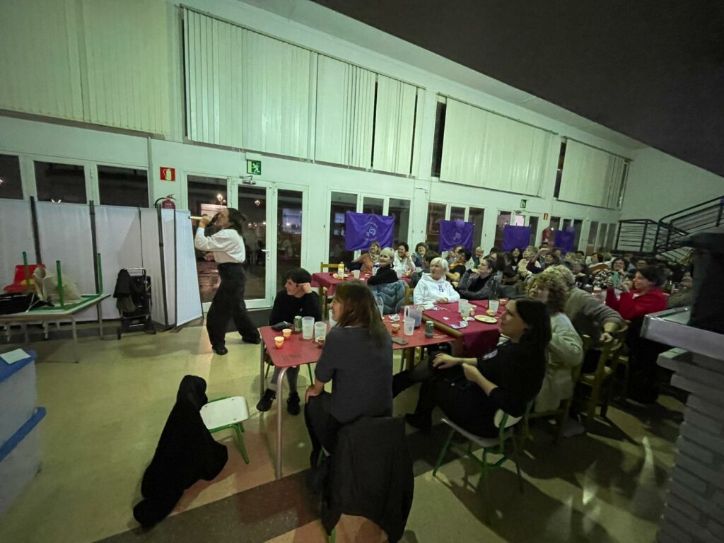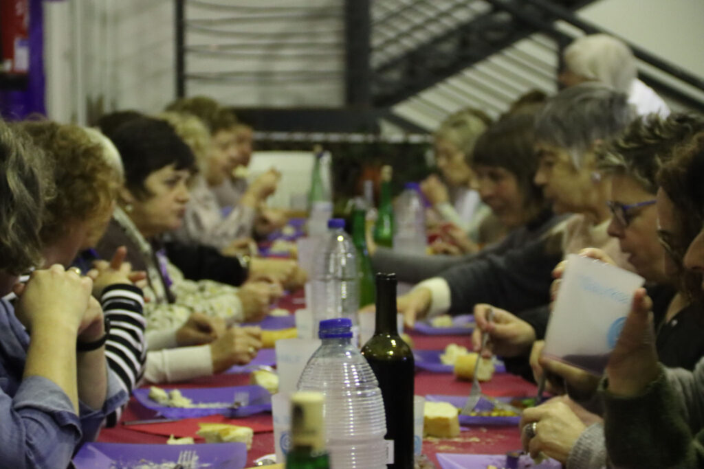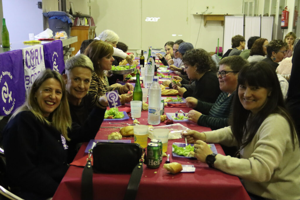 Eguraldi euritsuak askorik lagundu ez bazuen ere, karropoteoarekin musikaz bete zituzten arratsaldean herriko kale eta tabernak. Festarekin jarraitzeko, Jubilatuen tabernan elkartu ziren ondoren afari feministan. 40 lagun inguru bildu ziren mahaiaren bueltan, eta afalostean karaokean kantatzera ere animatu ziren hainbat.