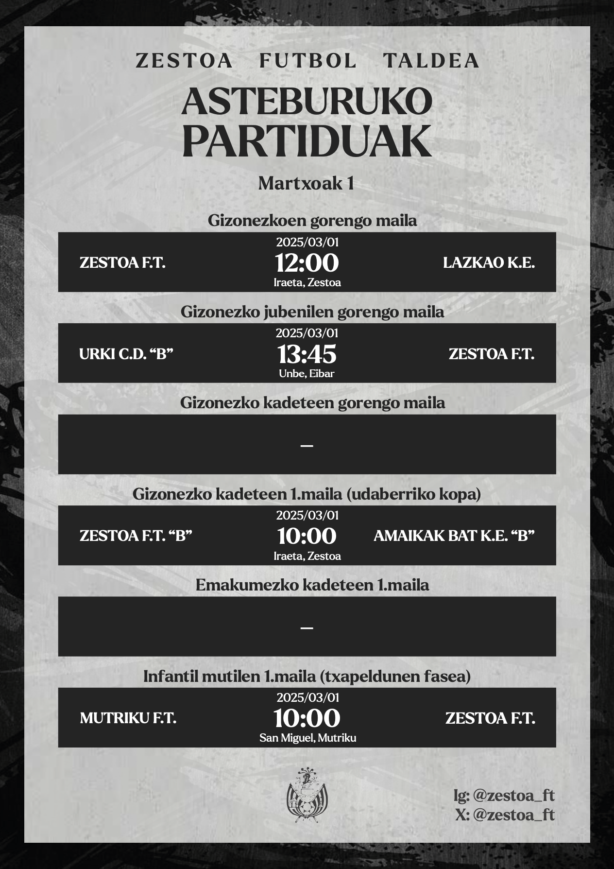 Zestoa Futbol Taldearen asteburuko partidak